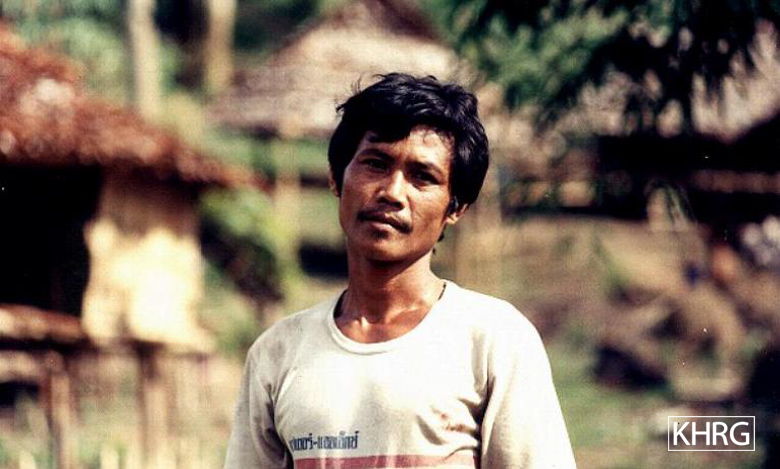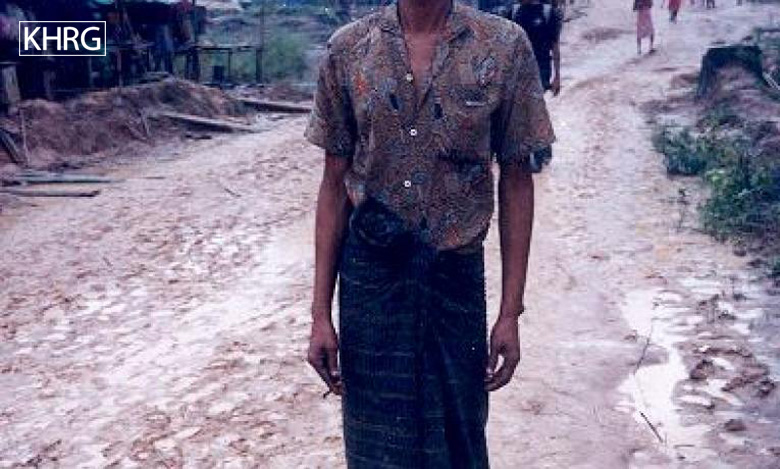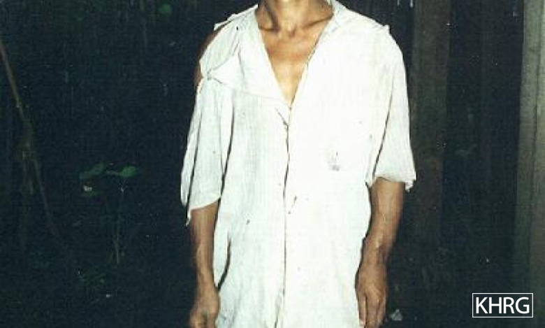 Photo #10: Mon/Indian U Mya Aung (47), who was kidnapped from his home in Ye town by SLORC troops taken as a porter to Three Pagodas Pass, and was then a porter with the troops who attacked Plat Hon Pai before he escaped the next day and made his way back to Halockhani. He was a porter for 19 days. ("Halockhani", p.12)