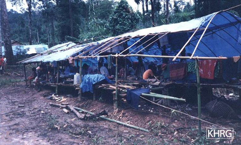 Photo #12: A view of part of "New Halockhani" on the Thai of the border. Four to six thousand Mon refugees fled here and set up camp around a Thai Border Patrol Police post after SLORC troops attacked their camp at Halockhani. They were sheltering under plastic sheets provided by foreign Non-Government Organizations until the Thais forced them back across the border into Burma in early September by impounding their food supply with armed guards ("Halockhani").