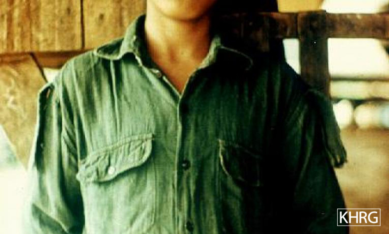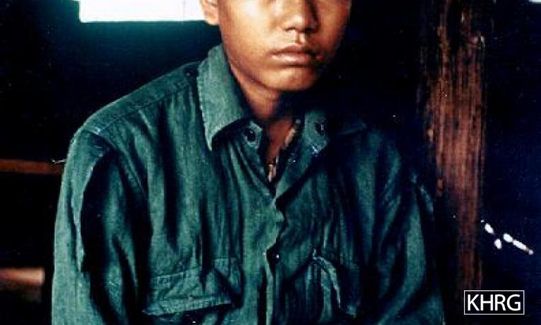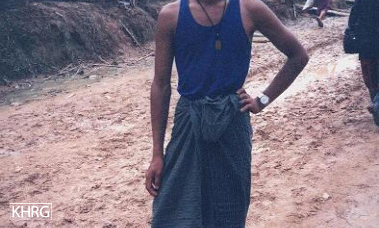 Photo #9: Nai San Lin (20), another son of Nai Win Nai (see photo 6). He was taken as a porter by the troops going from Plat Hon Pai to Halockhani but couldn’t escape when fighting broke out. The troops then kept him as a porter for several days on their way to Ye. Along the way he was beaten, threatened that he would be shot and almost drowned in the Krain Thaung River because of his load. He escaped after a few days and spent 4 days in the jungle without food. ("Halockhani", p.4)