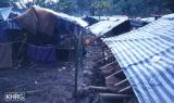Photo #32: Refugees at Klay Muh Kloh lined up for vaccinations for their children, which were being given by foreign medics. In their villages in the SLORC-controlled area, no such services are allowed. ("Klay Muh Kloh") Photo #33: Building a house in the new Karen refugee camp of Klay Muh Kloh, on the Karen side of the border due to recent Thai policy barring refugees from entering Thailand. Over 5,000 refugees arrived in the camp in the first three months. When this rainy season ends, thousands more will certainly arrive - however, Thai authorities have already threatened to cut off supplies crossing the border for any new arrivals. This man’s house will have very little security - SLORC troops are still just a few hour’s walk away. ("Klay Muh Kloh") Photo #34: Some of the new houses at Klay Muh Kloh camp. ("Klay Muh Kloh").
