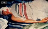 Photo #20: Maung Win Htun (39), a Karen small goods trader from Pegu Division who was wrongly imprisoned as a political prisoner in Bassein Prison, Irrawaddy Delta, from 1992 until June 1994. Note his deformed and swollen left arm, broken in beatings by SLORC Intelligence and Police during his interrogation. It was never treated except by the other political prisoners in his cell. ("Prisoner", p.1).