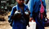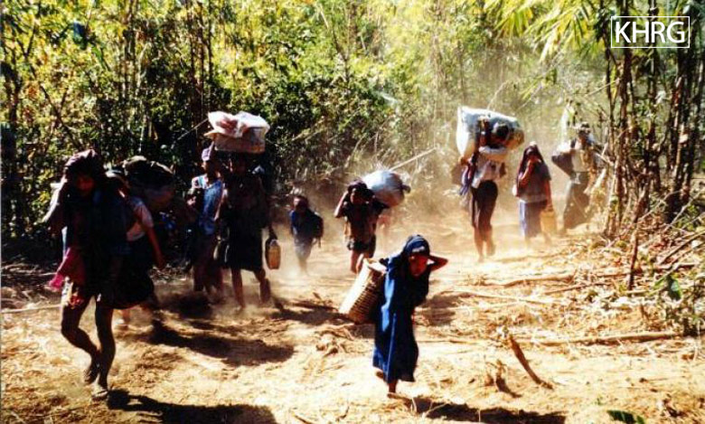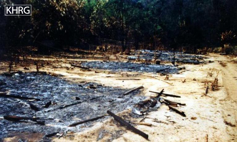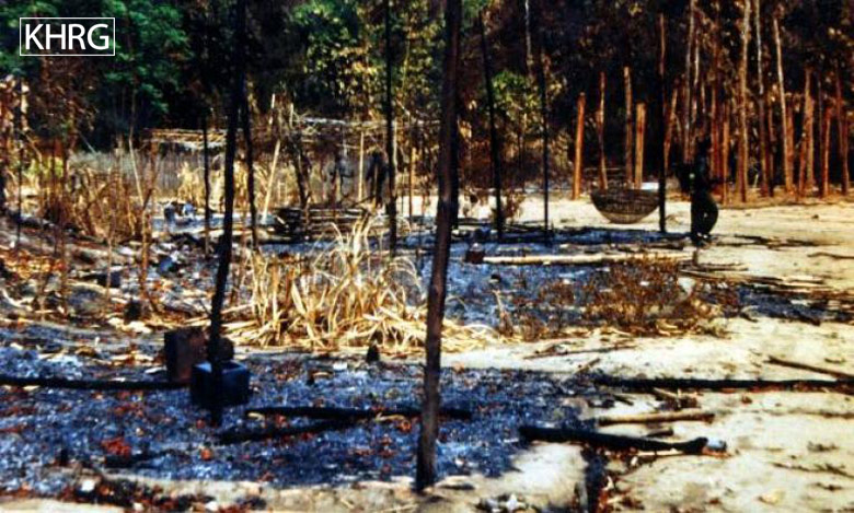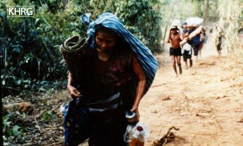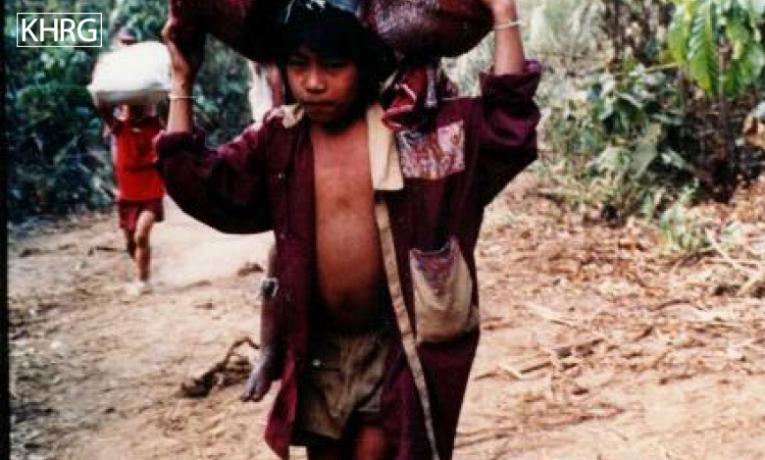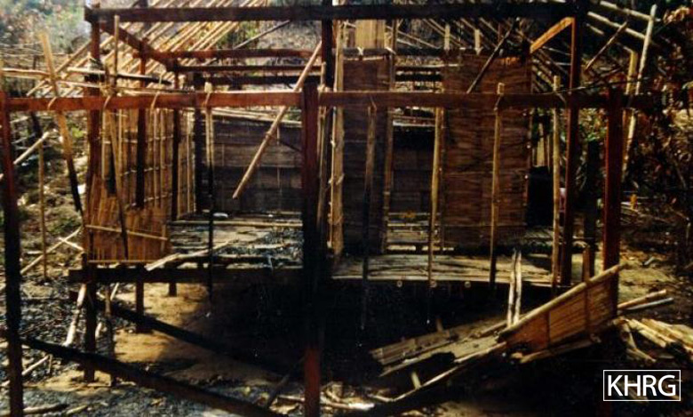 In February 1997 SLORC launched a mass offensive against Karen-held regions in Dooplaya District, otherwise known as KNLA 6th Brigade area. They managed to capture almost all Karen-held territory in the area with amazing speed, within only 1-2 weeks. At least 10,000 new Karen refugees streamed across the Thai border before SLORC troops occupied their villages, but many more were trapped inside by the lightning speed of the offensive and many families were split. Now that the fighting has stopped, more refugees continue to arrive fleeing forced labour and other abuses which are beginning throughout the newly-occupied region. All photos relate to the report "Refugees from SLORC Occupation" (‘Offensives’).