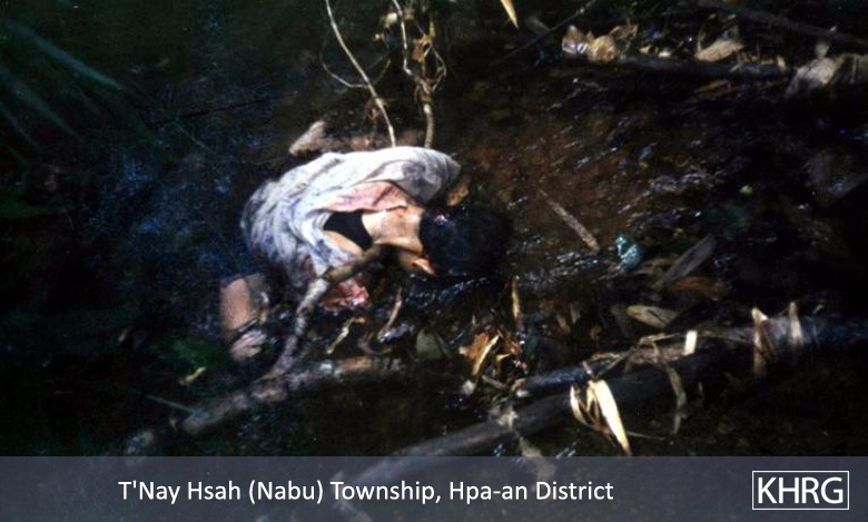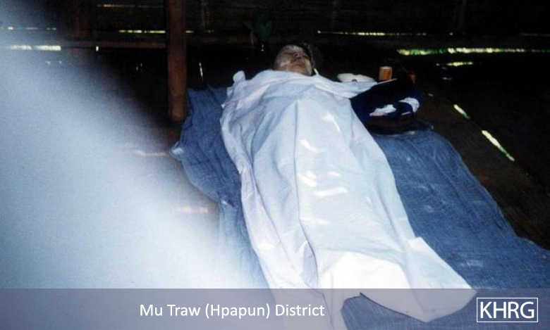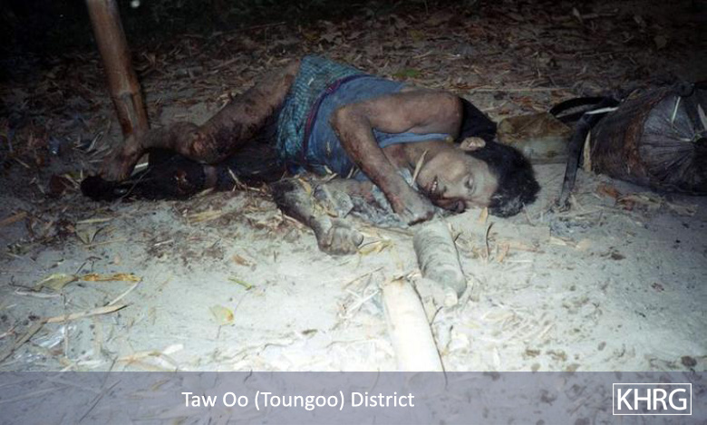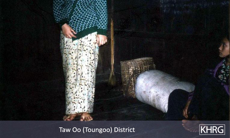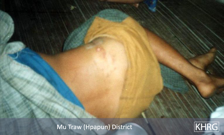 This photo set contains more than 500 photos and their descriptions which document the human rights situation in Karen areas of Burma. These photos were taken and collected by KHRG since the publication of Photo Set 2001-A in September 2001. The photos in this set were taken in Toungoo, Nyaunglebin, Papun, Thaton, Pa’an and Dooplaya Districts. The photos have been divided into separate headings: ‘Forced Labour’, 'Attacks on Villages & Village Destruction', 'Detention and Torture', 'Shootings and Killings', 'Flight and Displacement', 'Landmines', 'Soldiers', 'Children', and 'Food'. Brief descriptions of the topics covered under each heading are provided at the beginning of each section. More detailed information on the abuses and the regions is available in KHRG documentary reports, several of which are referenced in the text below. Of important note is that many of the abuses documented in this photo set occurred after Aung San Suu Kyi was released from house arrest in May 2002 and international attention increasingly began to focus on an imminent agreement between the SPDC and the National League for Democracy. These photos graphically demonstrate that while the international community discusses the ‘progress’ in Rangoon, gross human rights abuses continue to be committed by SPDC forces in the countryside. The numerous forced labour photos in this set have been taken since the SPDC claimed that it had put an end to forced labour, most of them since the International Labour Organisation’s High Level Team released its report criticising the regime's continued use of forced labour and its inadequate attempts to halt the practice.