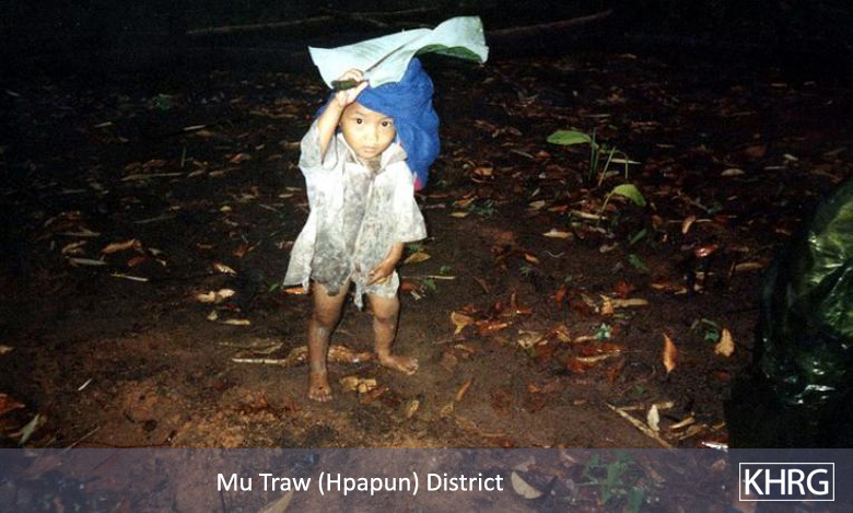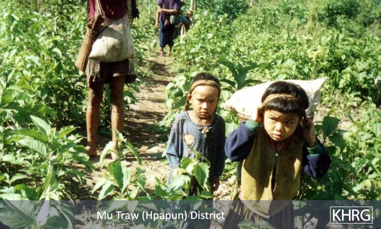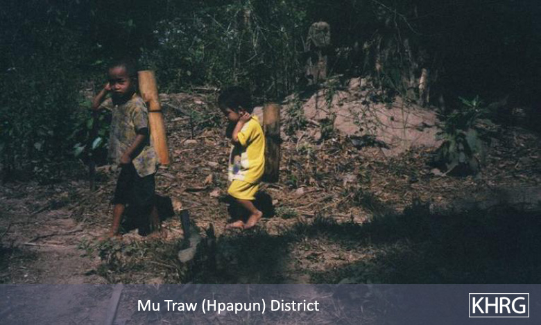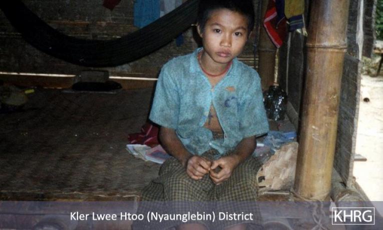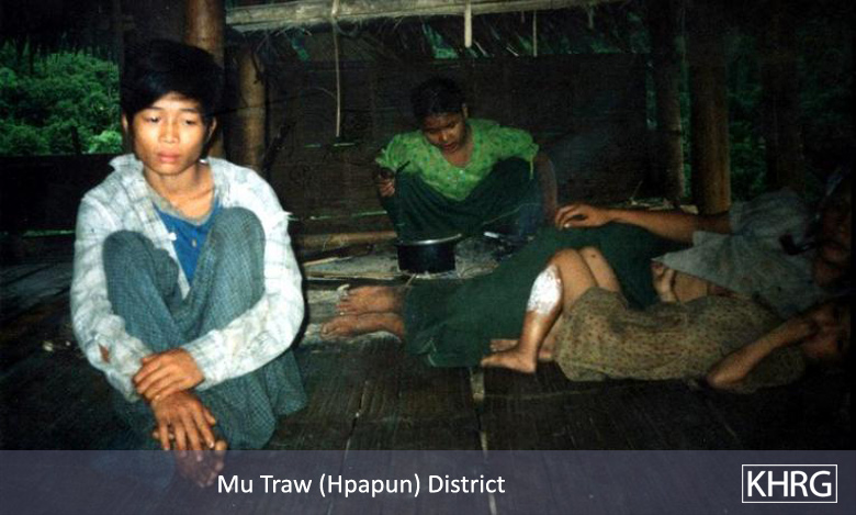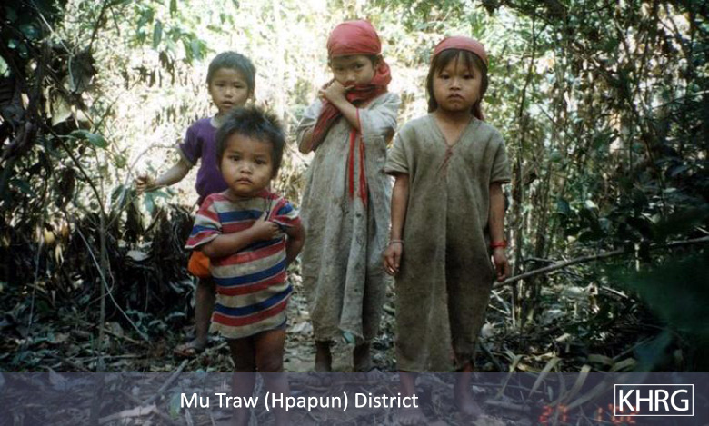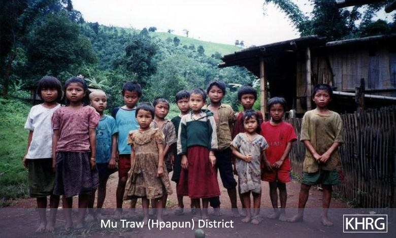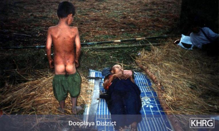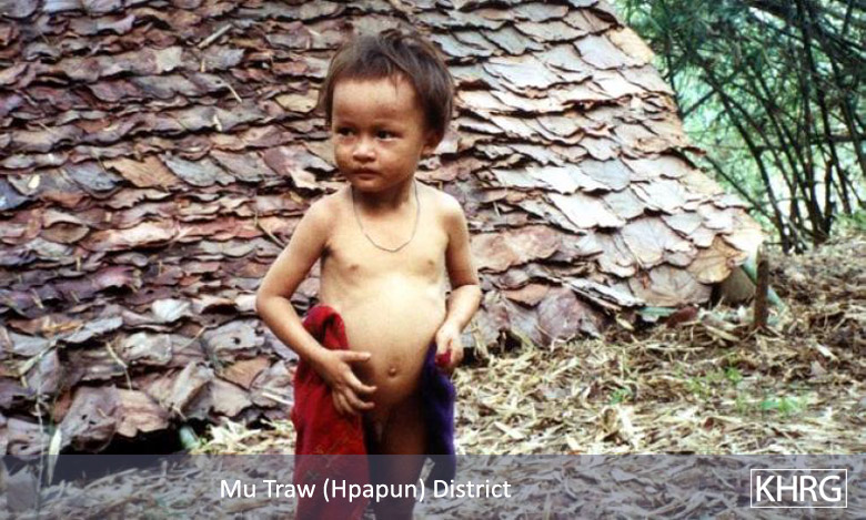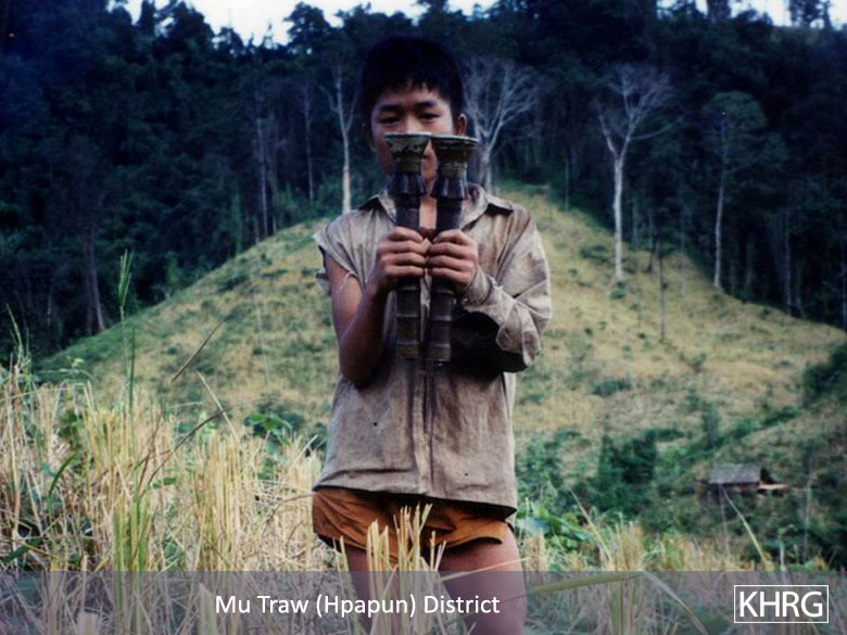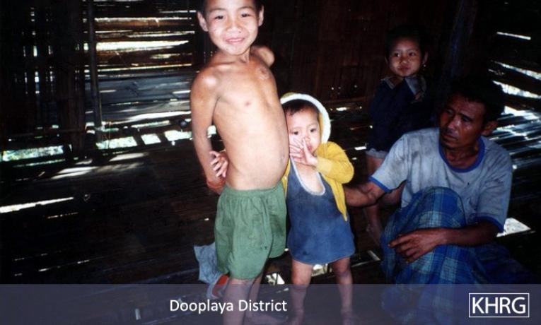 This photo set contains more than 500 photos and their descriptions which document the human rights situation in Karen areas of Burma. These photos were taken and collected by KHRG since the publication of Photo Set 2001-A in September 2001. The photos in this set were taken in Toungoo, Nyaunglebin, Papun, Thaton, Pa’an and Dooplaya Districts. The photos have been divided into separate headings: ‘Forced Labour’, 'Attacks on Villages & Village Destruction', 'Detention and Torture', 'Shootings and Killings', 'Flight and Displacement', 'Landmines', 'Soldiers', 'Children', and 'Food'. Children in the Karen areas of Burma are frequently the victims of forced labour, detention, torture, killings, village destruction, displacement, landmines and each of the other forms of human rights abuses documented in this photo set. They suffer from these abuses as individuals and as part of a family and the village community.