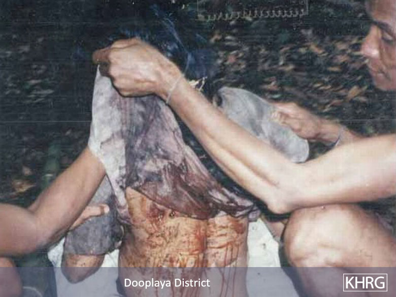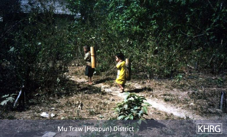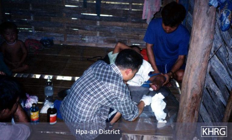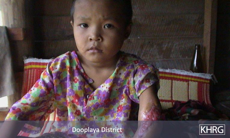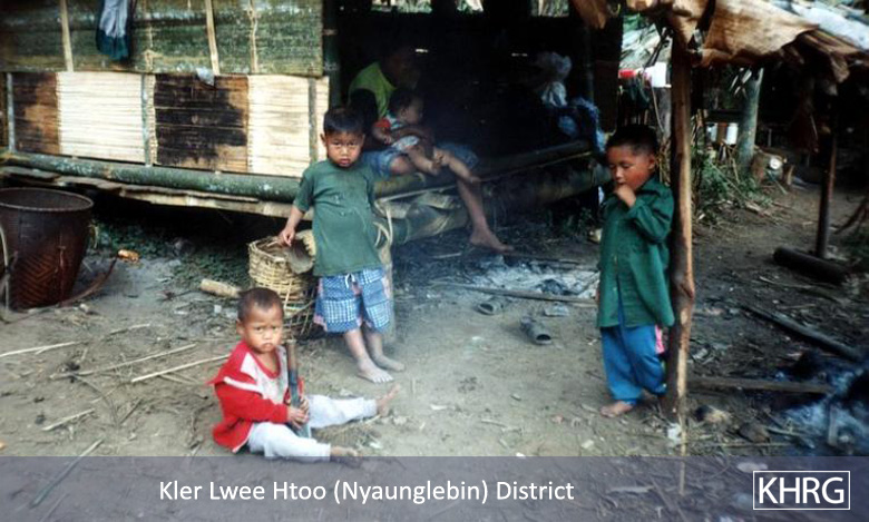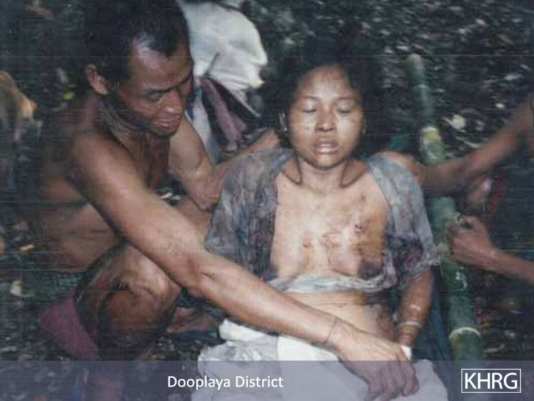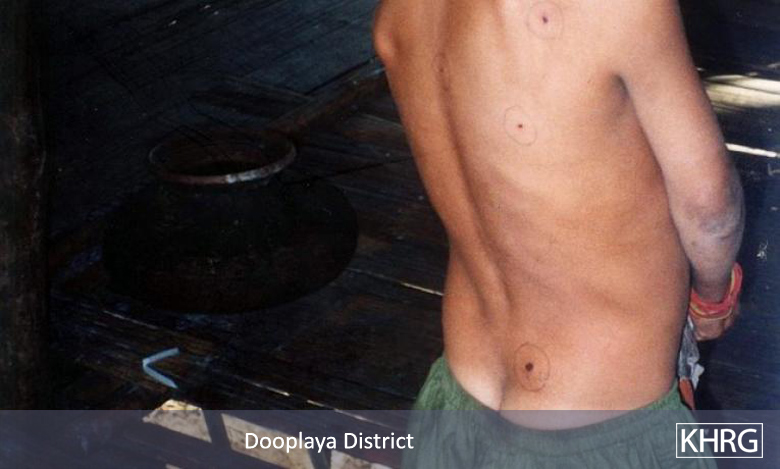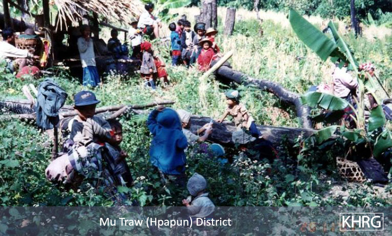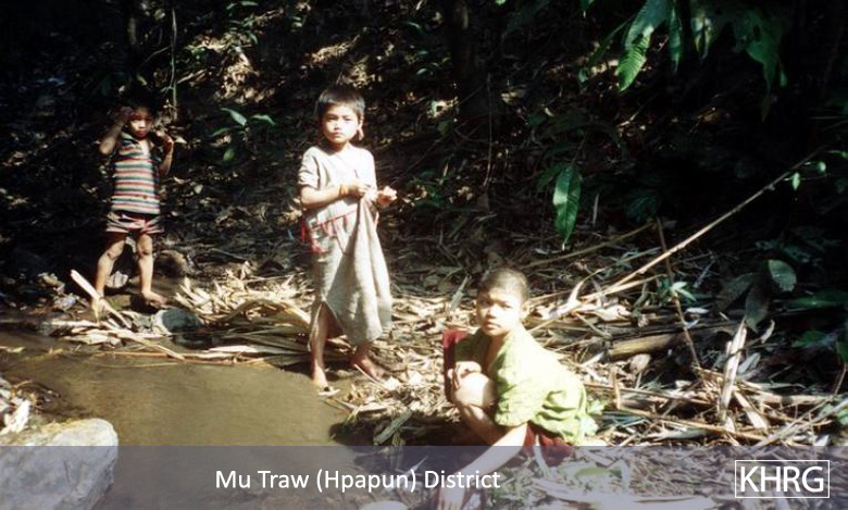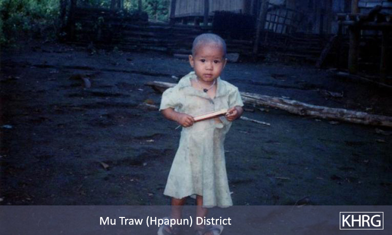This photo set contains more than 500 photos and their descriptions which document the human rights situation in Karen areas of Burma. These photos were taken and collected by KHRG since the publication of Photo Set 2001-A in September 2001. The photos in this set were taken in Toungoo, Nyaunglebin, Papun, Thaton, Pa’an and Dooplaya Districts. The photos have been divided into separate headings: ‘Forced Labour’, 'Attacks on Villages & Village Destruction', 'Detention and Torture', 'Shootings and Killings', 'Flight and Displacement', 'Landmines', 'Soldiers', 'Children', and 'Food'. Children in the Karen areas of Burma are frequently the victims of forced labour, detention, torture, killings, village destruction, displacement, landmines and each of the other forms of human rights abuses documented in this photo set. They suffer from these abuses as individuals and as part of a family and the village community.