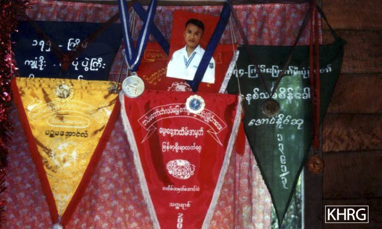 Photos #D45, D46: On December 9th 2001 at 6 o’clock in the morning, Police Corporal Z--- and Lance Corporal H--- were on duty at the xxxx quarter checkpoint in Kawkareik town. Both men were drunk and began verbally harassing a village woman, Nan M---, from yyyy village. The 18 year old girl was coming back from Thamehnya Mountain [where a famous Buddhist monastery is located near Pa’an town]where she had gone to worship at a monastery. She was questioned by the two policemen who also took 1,000 Kyat from her. Her cousin, Saw Htay Win, happened to arrive at the checkpoint at this time. The 10th Standard [Grade] student from Kawkareik High School #2 went to help her. The police told him, “This does not concern you. Don’t come and bother us.” Saw Htay Win said, “It does concern me. This is my cousin, my younger sister [a relative term since she is younger than him] and I am not satisfied with what you are doing.” The policemen than came closer to Saw Htay Win and punched him. One of the policemen picked up a stick and hit him on the head. Saw Htay Win became dizzy. The other policeman pulled his gun and shot Saw Htay Win in the right shoulder. The bullet traveled down through his liver and intestine killing Saw Htay Win. The police sent the young man’s body to xxxx Hospital before his parents could come for him. The doctors cut open his head and his torso to remove the bullet. They then sewed him back up and placed him in the morgue. When the young man’s parents went to ask about the incident no one dared to say anything. The parents then went to meet the two police men who were responsible but they were not allowed. The parents wanted to take his body back to be buried in their village, but the authorities would not allow it and wanted him buried beside the Army camp near xxxx town. More than 200 students demonstrated for at least two days because the authorities took no action against the two policemen. The uprising was calm, but the immigration police told the teachers of High School #x that they had better control their students or harsh action would be taken. The teachers told the students’ parents to control them. The authorities have yet to do anything about it and the parents are still unable to take their son home to be buried. The young man’s cousin, Nan M---, has become mentally unstable because of the event. Saw Htay Win was involved in many sports competitions for boxing, football, running and javelin and he won many awards for his athletic ability. On the morning of December 9th he was going to Pa’an to attend a boxing competition which was to be held on December 10th. Photo #D46 is of Saw Htay Win's medals that he won in sports competitions and for scholastic achievement. [Photos: KHRG researcher]