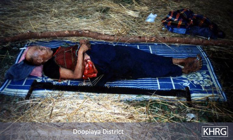 Photos #D53, D54, D55, D56, D57: On January 14th 2002, Naw N---, her husband and her son were coming back form cutting firewood when soldiers from LIB #xxx under Battalion Commander M--- and Battalion Deputy Commander M--- opened fire on them. Naw N--- was killed and her son was injured in the back by shrapnel, probably from a rifle grenade or a rocket-propelled grenade (RPG). The incident happened near xxxx village, Dooplaya District. [Photos: KHRG researcher]