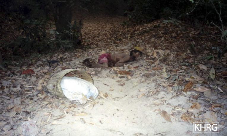 Photos #F28, F29, F31: Saw A--- (Photos #F28 and F29), 37 years old, and Saw H--- (Photos #F30 and F31), 14 years old, were going to buy food in xxxx village on March 22nd 2002 with 18 other villagers from yyyy village. At 6:40 in the morning they stepped on landmines at zzzz on a path beside the xxxx River in Toungoo District. The landmines had been laid by SPDC Infantry Battalions #53, 264 and 30. Both men died immediately. These photos were taken on March 23rd 2002. Photo #F33 shows Saw N--- (on the left), a 12 year old, fifth standard student, whose father, Saw A---, was killed by the landmines. Photos #F28 through F31 were taken where the men actually died, while photo #F32 shows the bodies together in preparation for burial. [Photos: KHRG researcher]