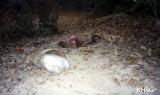 Photos #E26, E27: Villagers from L--- village, Papun District rest in a dry riverbed after fleeing an SPDC column. The soldiers of Tactical Operations Command #333 of LID #33 entered L--- village on November 25th 2001 causing the villagers to flee. The soldiers stayed in the village for several days looting the villagers' livestock and possessions and then burned and destroyed what remained. The presence of SPDC soldiers in L--- village caused the villagers in surrounding villages to flee into the forest in case the column came to their villages as well. Most of the villagers were unable to take blankets and clothes with them when they fled. November is the beginning of the cold season, when night temperatures can drop close to freezing in these hills, but the villagers are unable to light fires out of fear of the nearby SPDC troops. Some of the villagers have become sick and have coughs and fevers because of the cold. The cold is especially bad for the children and the elderly. [Photos: KHRG researcher]