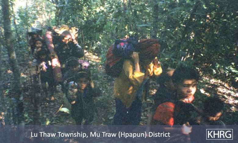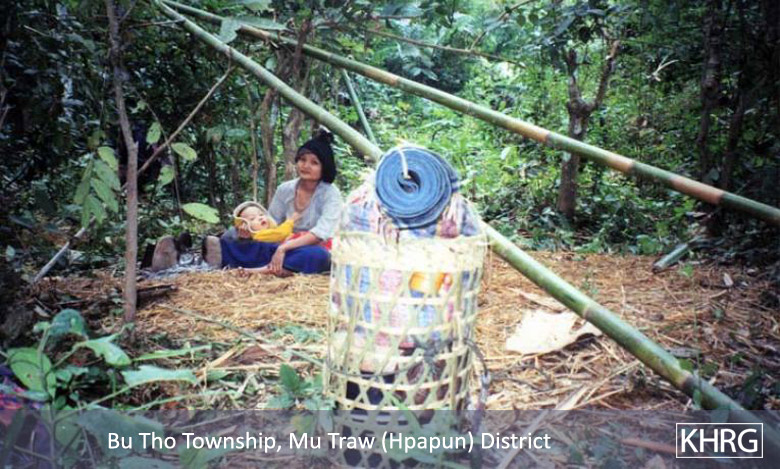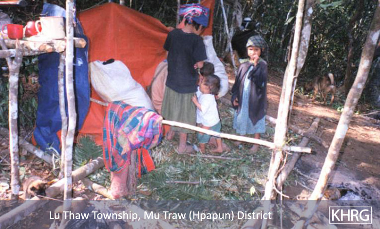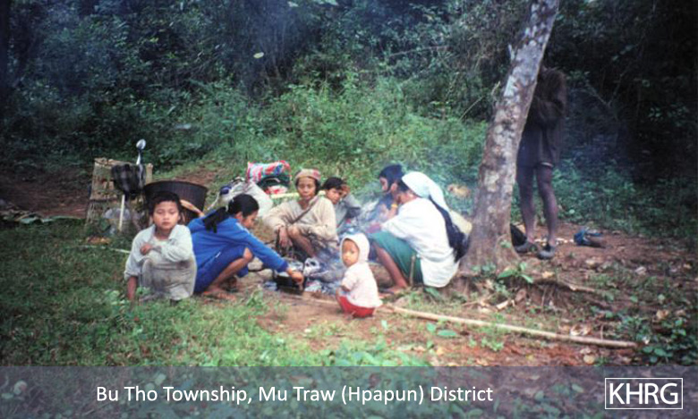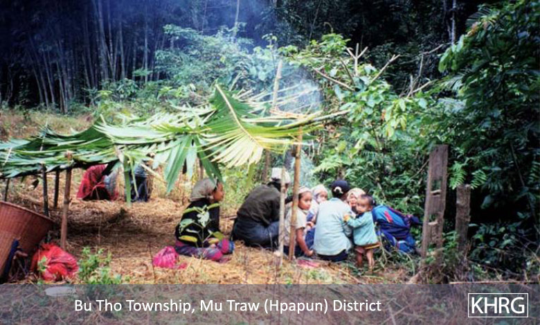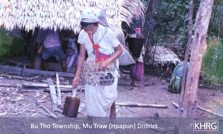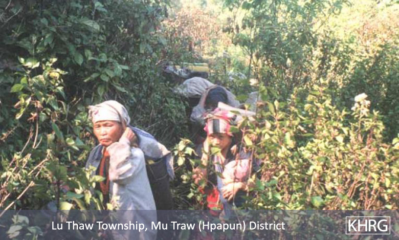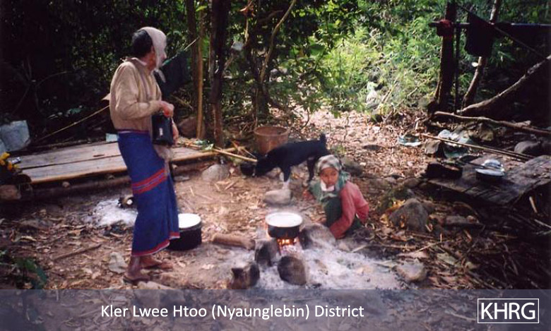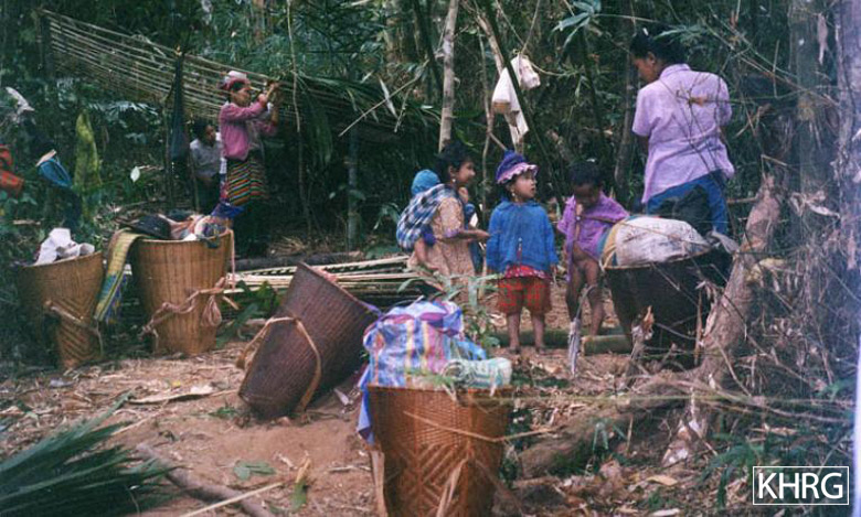 Flight and displacement takes on many different forms in rural Karen areas. In SPDC-controlled villages, people find they can no longer survive adequately due to the demands for forced labour, the extortion, and the regime of restrictions they face in their daily lives, and leave their village for areas where the SPDC has less control. People in remoter areas are issued forced relocation orders and either move to the relocation site as ordered, or move into hiding near their village. Hill villagers find they can no longer farm because a new road lined with SPDC Army camps is pouring SPDC troops into their area, so they move into the higher hills. People already living in hiding in the forests have to flee to remoter areas when SPDC columns come too close. Villagers in forced relocation sites, cut off from access to their land, find they cannot survive and flee back to the area of their home village. These are only a few examples.