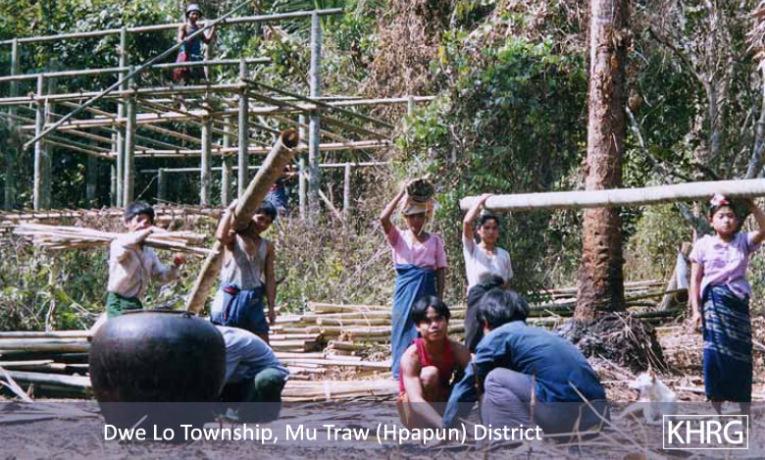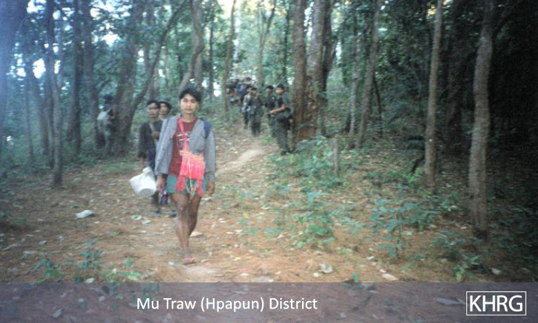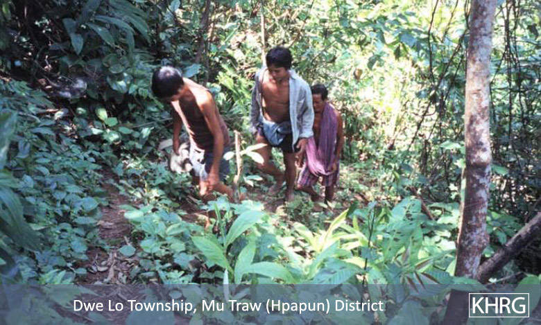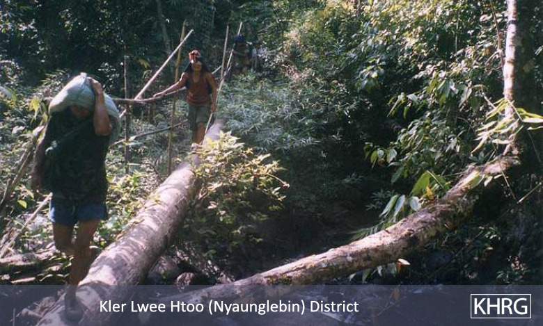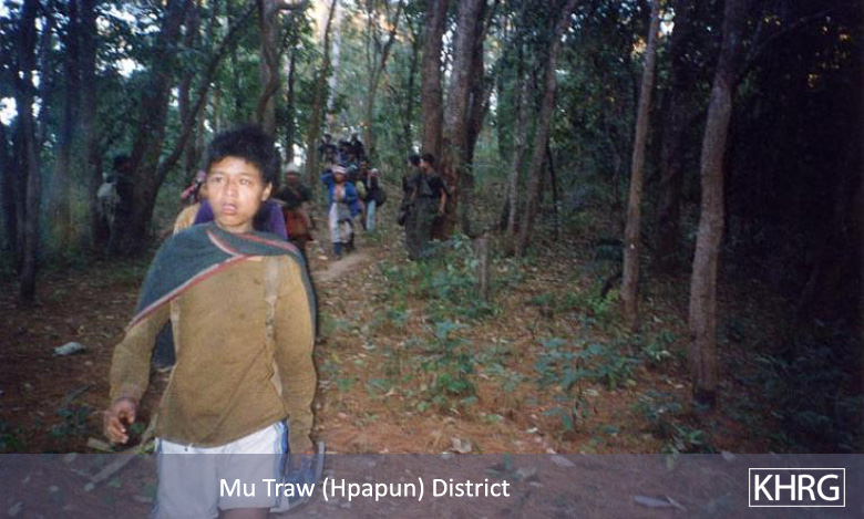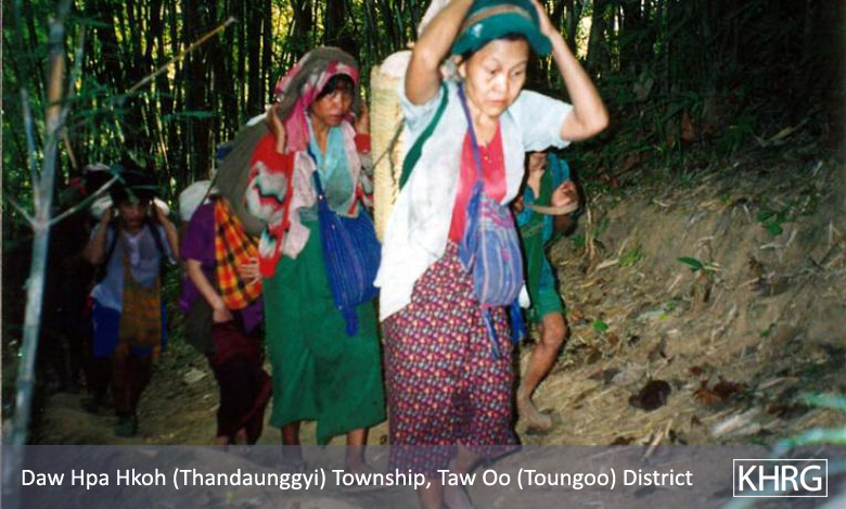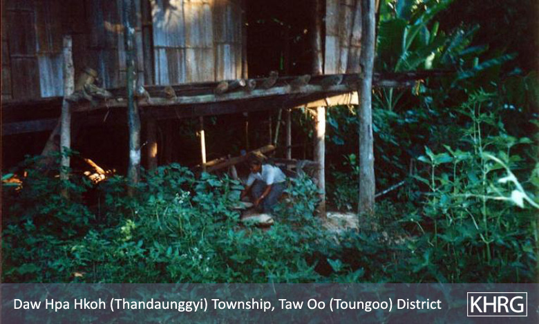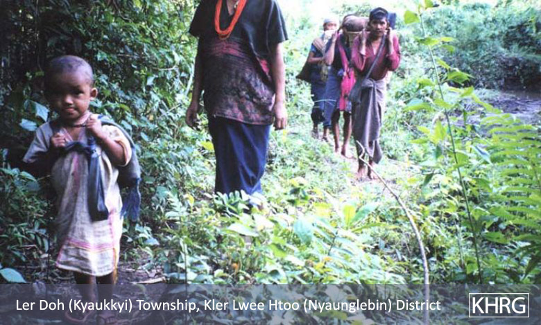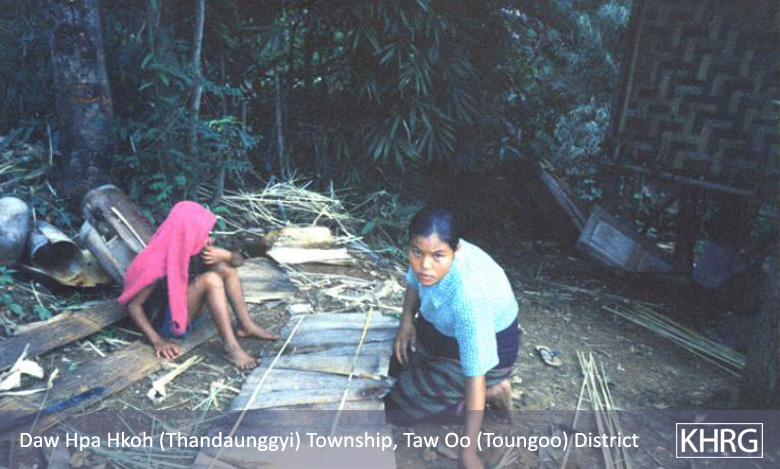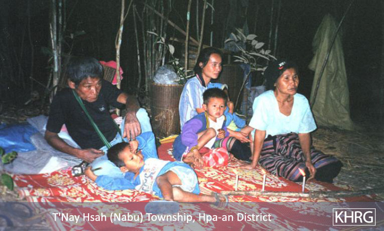 Flight and displacement takes on many different forms in rural Karen areas. In SPDC-controlled villages, people find they can no longer survive adequately due to the demands for forced labour, the extortion, and the regime of restrictions they face in their daily lives, and leave their village for areas where the SPDC has less control. People in remoter areas are issued forced relocation orders and either move to the relocation site as ordered, or move into hiding near their village. Hill villagers find they can no longer farm because a new road lined with SPDC Army camps is pouring SPDC troops into their area, so they move into the higher hills. People already living in hiding in the forests have to flee to remoter areas when SPDC columns come too close. Villagers in forced relocation sites, cut off from access to their land, find they cannot survive and flee back to the area of their home village. These are only a few examples.
