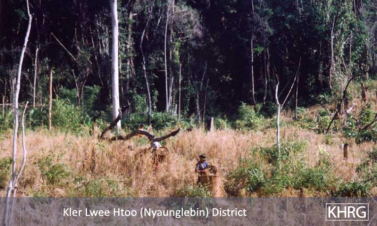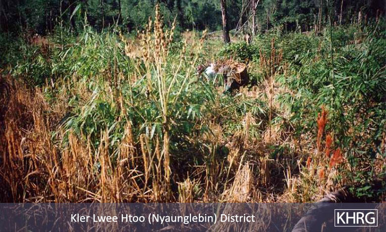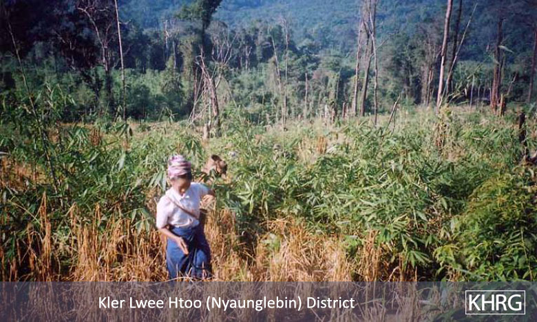 People who move from their home areas to SPDC-controlled areas or forced relocation sites are usually cut off from their home fields, which rapidly degenerate (see photos 7-59 to 7-60 ). Most of them have to find ways to survive by doing paid day labour for farmers or others, supplemented by foraging whatever they can. Combined with the regular forced labour now demanded of them, many find it too difficult to survive and end up fleeing back into their home areas despite the risks.