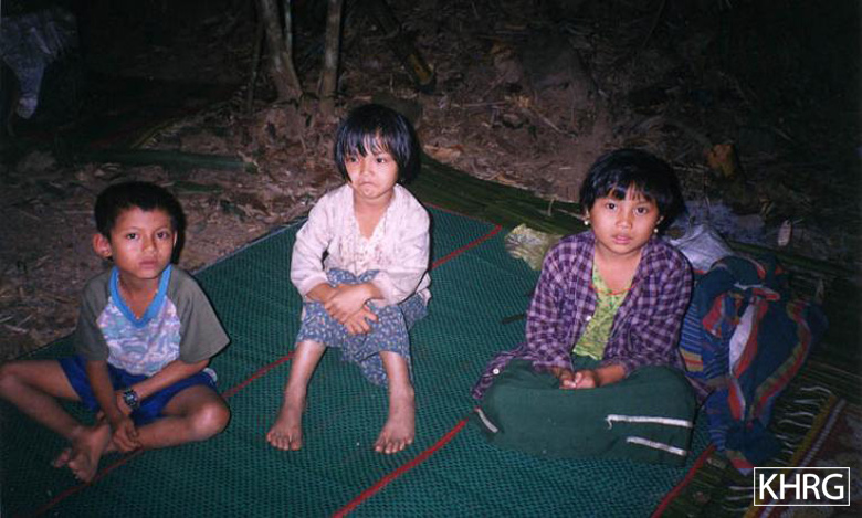 Photo #10-69: Karenni children on the run from SPDC Light Infantry Division #55 in the forest of northern Papun district on January 9 th 2004. [Photo: KHRG researcher] Photos #10-70, 10-71: Karenni villagers who fled SPDC militarisation in southern Kayah State into the forests of Toungoo district in Karen State in January 2004. [Photos: KHRG researcher]