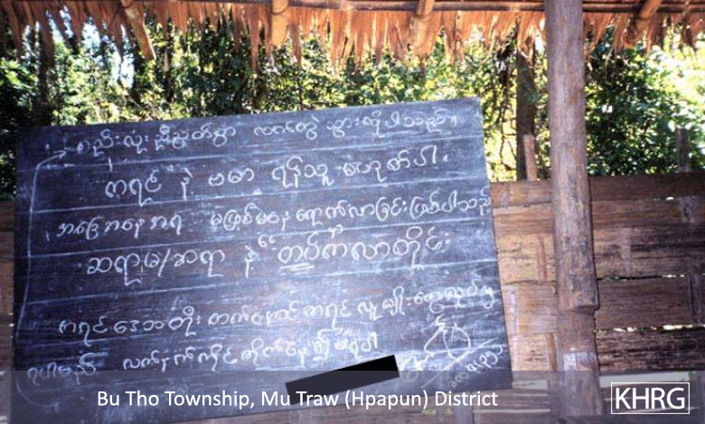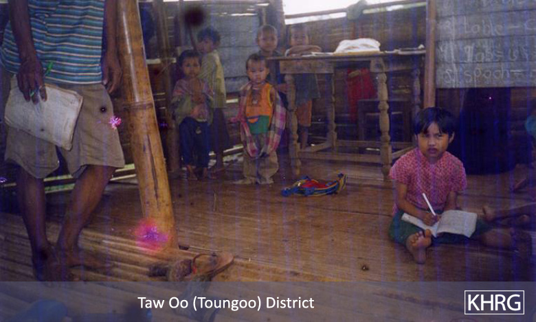 Recognising the importance of village schools to Karen identity and village solidarity, the SPDC tries to destroy them and refuses to allow any schooling to exist outside the state-controlled system. Non-state schools are burned if found (see photos 1-52 to 1-55 ), whether in villages or in IDP hiding sites. Whenever SPDC columns are nearby the villagers have to close their schools, so some of them can only remain open sporadically (see photos 9-27 to 9-28 , 9-29 , 9-31 , 9-32 , 9-36 , and 9-38 ). Yet despite the risks, villagers have stated to KHRG that education will remain a priority for them if only to prevent the SPDC from succeeding in its attempt to dehumanise them and destroy their communities.