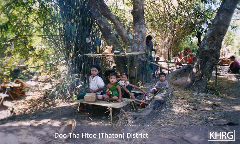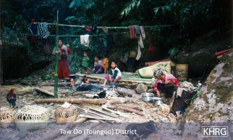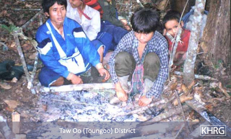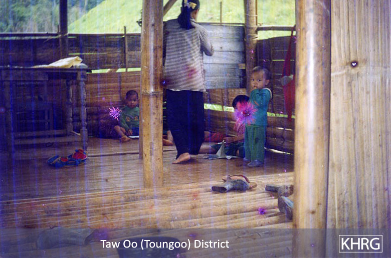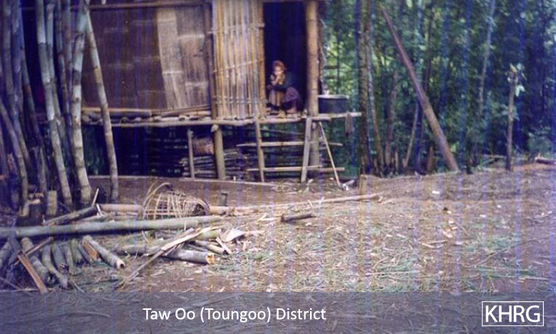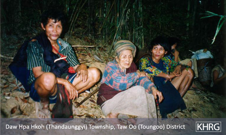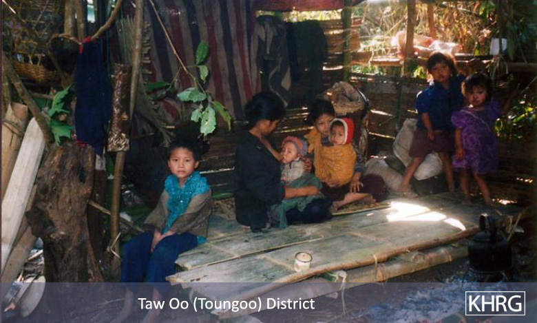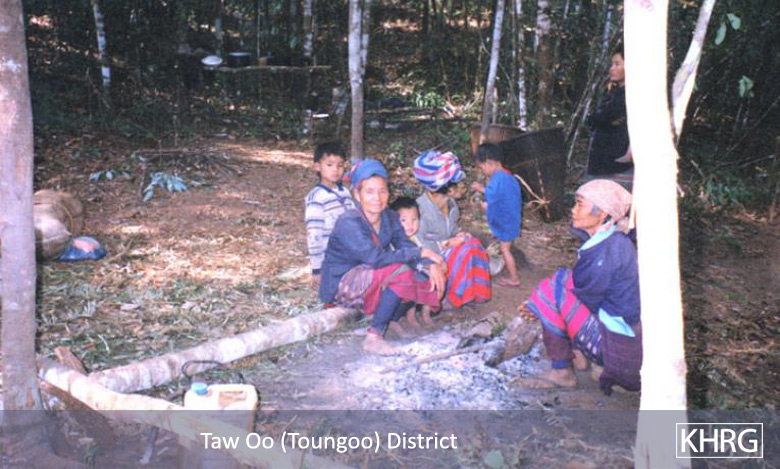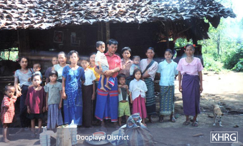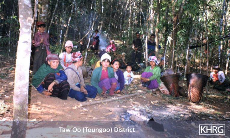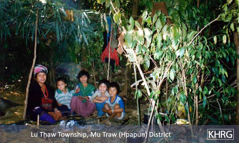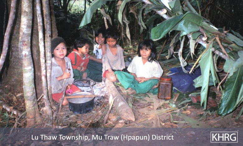 The photos in this section were taken in Toungoo, Nyaunglebin and Papun districts in northern Karen State, Pa'an and Thaton districts in central Karen State, and Dooplaya district in southern Karen State. Most are from the northern districts, where the terrain makes it possible for tens of thousands of villagers to live in hiding and continue evading SPDC control. Some of the photos show villagers from southern Karenni (Kayah State) who have fled to these northern Karen districts to evade SPDC control. In Thaton, Pa'an and Dooplaya districts, SPDC control is more pervasive and there are fewer areas to hide, so villagers sometimes have little choice but moving to a forced relocation site or trying to escape to Thailand. Though numbers are impossible to accurately establish, the number of Karen villagers known to be displaced in the areas shown in these photos is in the hundreds of thousands.