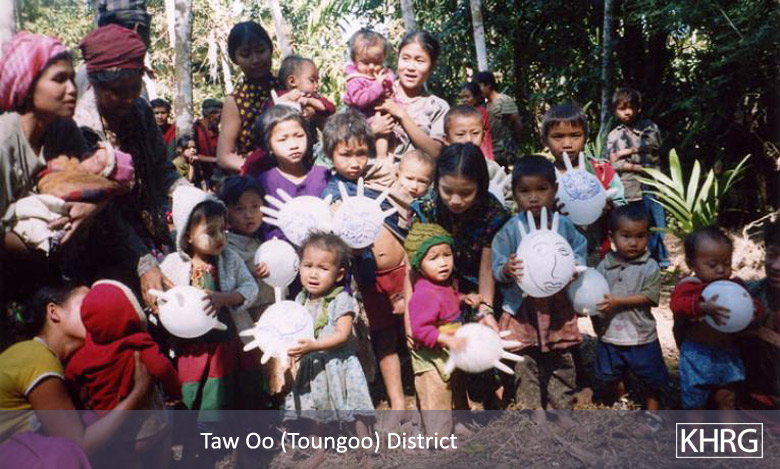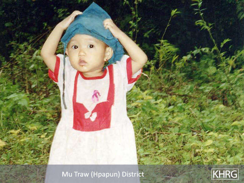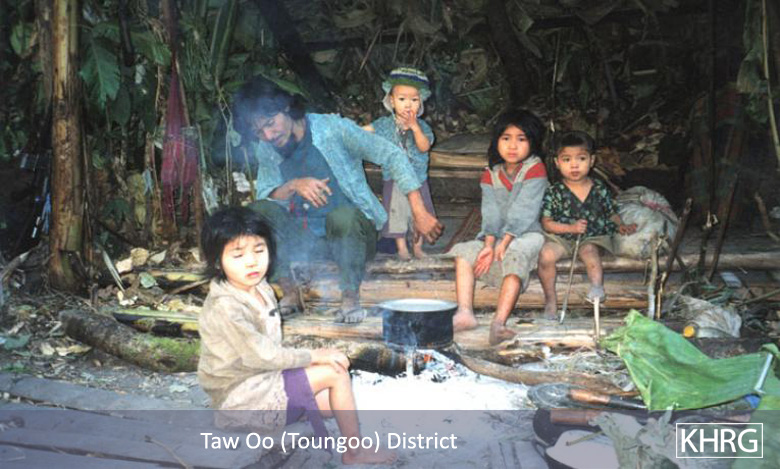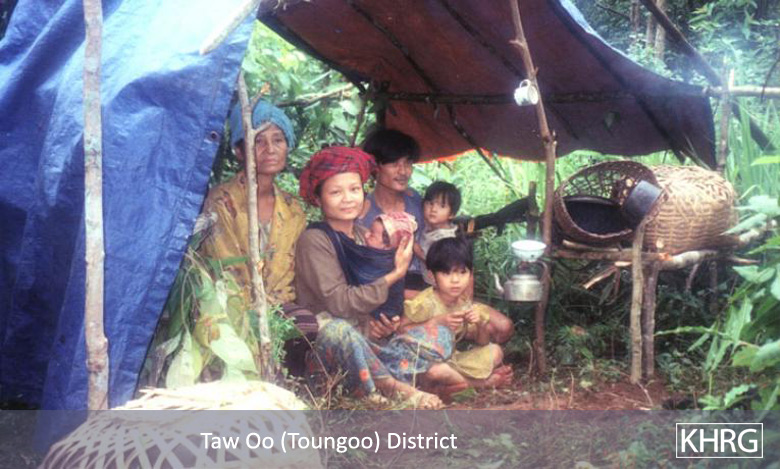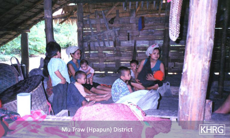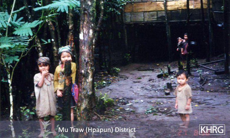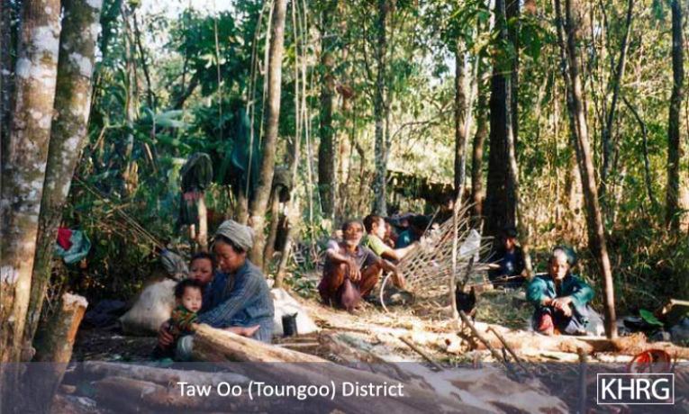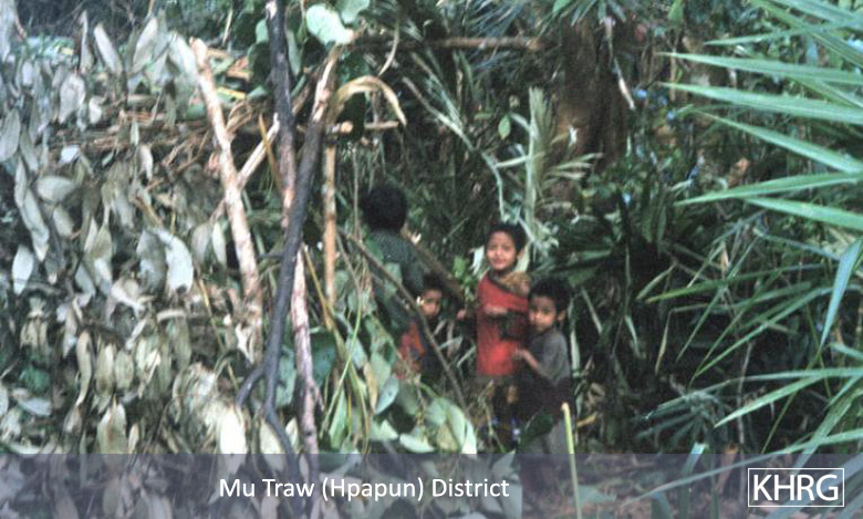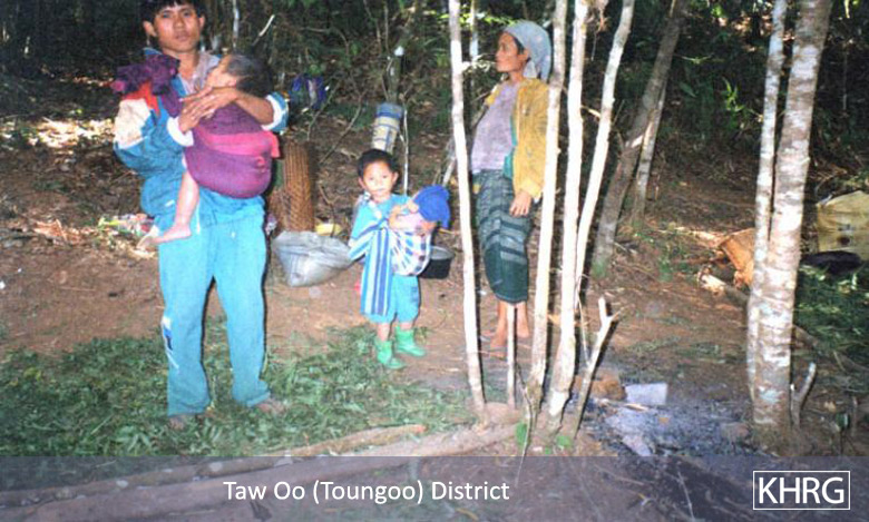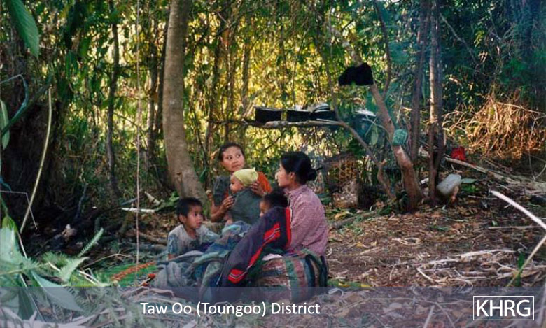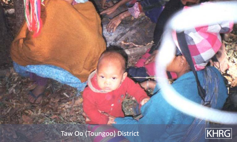The photos in this section were taken in Toungoo, Nyaunglebin and Papun districts in northern Karen State, Pa'an and Thaton districts in central Karen State, and Dooplaya district in southern Karen State. Most are from the northern districts, where the terrain makes it possible for tens of thousands of villagers to live in hiding and continue evading SPDC control. Some of the photos show villagers from southern Karenni (Kayah State) who have fled to these northern Karen districts to evade SPDC control. In Thaton, Pa'an and Dooplaya districts, SPDC control is more pervasive and there are fewer areas to hide, so villagers sometimes have little choice but moving to a forced relocation site or trying to escape to Thailand. Though numbers are impossible to accurately establish, the number of Karen villagers known to be displaced in the areas shown in these photos is in the hundreds of thousands.
