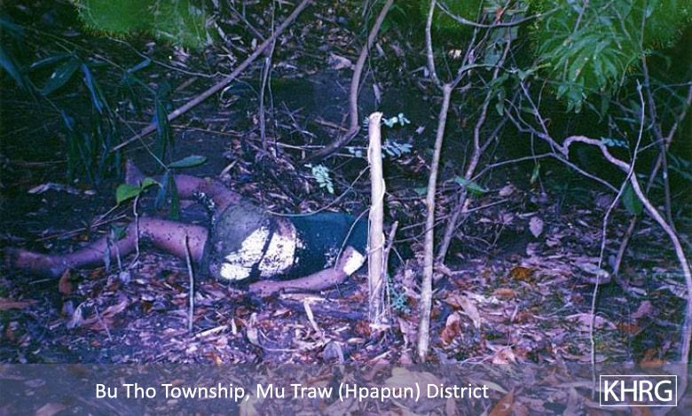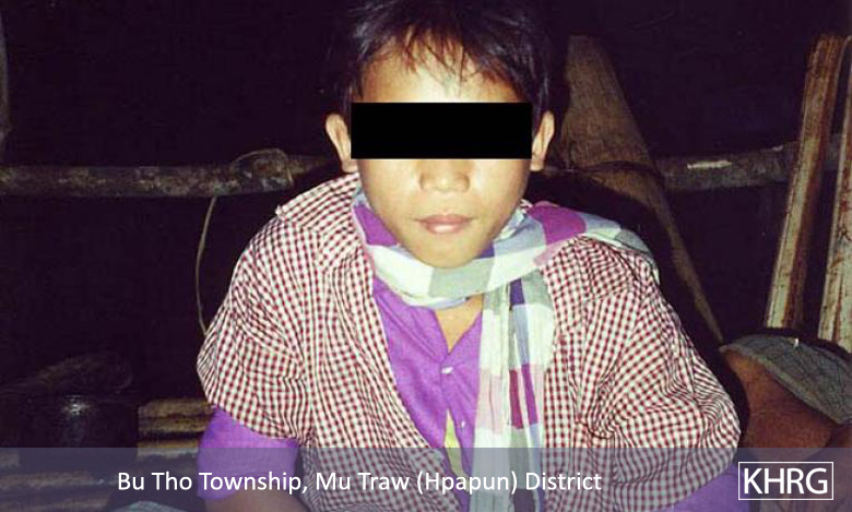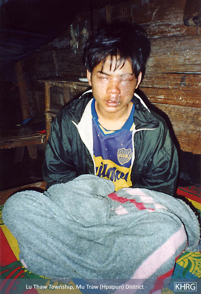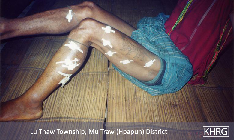 There is also the constant danger of being shot by SPDC columns (see Section 5, Shootings and Killings ) or stepping on landmines (see photos 11-11 and 11-12 to 11-15 , and other photos in Section 11 [Landmines] ). Landmines are laid by all armed forces in these areas and are seldom removed. KNLA forces are the only ones to try to inform the villagers of which pathways are mined, but the information they provide is insufficient and many villagers still detonate their mines. Villagers who survive shootings or stepping on mines carry the resulting disabilities for their entire lives, particularly because proper treatment is unavailable (see photos 11-48 to 11-49 and 5-77 ); while more still suffer the effects of previous forced labour (see photo 10-147 ) and other SPDC abuses.