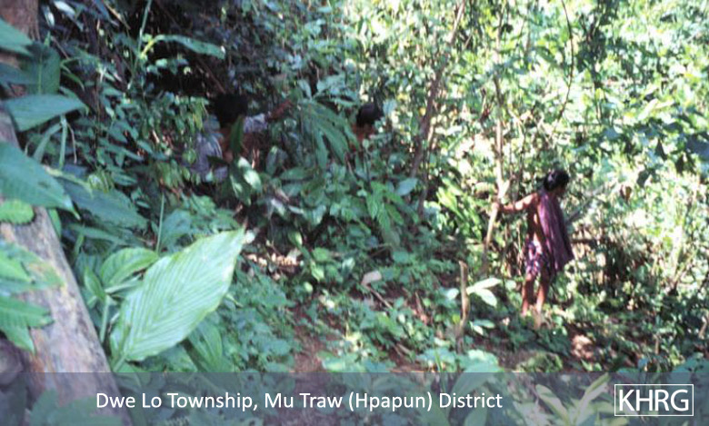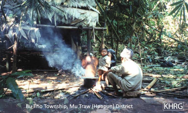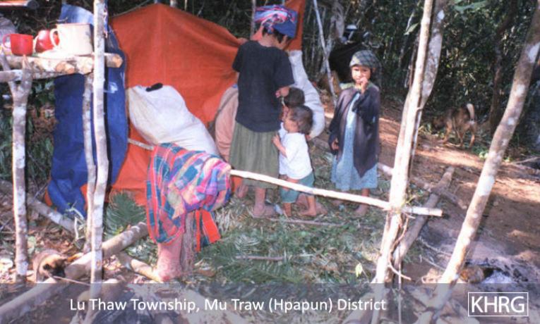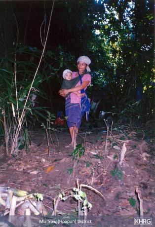 When Karen villagers become displaced, they usually do not go far because they want to retain access to their fields and to familiar terrain. Sometimes the initial move is simply to the farmfield hut. People continue trying to plant and harvest, though covertly, and keep their rice supplies hidden in the forest. If SPDC troops become more active in their area, however, they may have to choose between a very mobile life near their fields, or moving further away from the SPDC presence. This forces them to find new land to plant, possibly to switch to a crop less visible than rice, and to diversify their livelihood, usually becoming more dependent on forest foods and cash crops. Obtaining rice becomes a major logistical dilemma. Some find they can no longer manage their survival, or encounter a disaster like the destruction of a crop or the loss of a family member, and must decide whether to continue the struggle or flee the area entirely.