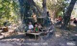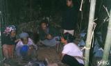 In most cases displacement is not a matter of moving a long distance from the village and staying in a new area, but moving to people's farmfield huts or hidden sites near their village, returning to the village occasionally or even living there when SPDC columns aren't around (see photos 10-1 and 6-138 to 6-139 ). People remain constantly ready to move when SPDC columns approach, and return when they leave the area. For most displaced Karen villagers, displacement is not a shift to a different location so much as a shift to a more fluid and mobile lifestyle within their home area (see photos 10-16 to 10-20 and 10-103 ). Photos 10-131 to 10-133 show the type of terrain which surrounds many Karen villages, and the villagers' familiarity with its geography, flora and fauna make this ideal ground for living without being detected. Sometimes IDP hiding sites become well-established and almost like villages themselves (see photo 10-101 ). It is when the SPDC presence becomes constant and pervasive that people are forced to leave the area completely, and this is when things become most difficult because they lose access to their fields and to familiar land and streams.