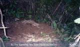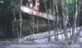 Photos #10-16, 10-17, 10-18, 10-19, 10-20: Photo 10-16 shows part of K--- village in Tantabin township, Toungoo district, in August 2004. Villagers here say that whenever SPDC patrols approach their village they have to flee into the forest to avoid being taken for forced labour or otherwise detained. As a result they have difficulty farming, breeding livestock, and travelling around the area. Photos 10-17 and 10-18 show them heading through the forest in January 2004, one of the many times they have had to flee. In February 2004 they were still hiding in rough shelters in the forest (photos 10-19 and 10-20 ) because SPDC troops were still active around their village. Though living in their village part of the time, they consider themselves displaced. [Photo: KHRG researcher]
