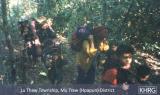 Photos #10-57, 10-58: These internally displaced villagers live in an area of Papun district where three columns of SPDC Light Infantry Division #55 are active. On January 18 th 2004, they went to collect some of their food stored back at their home village of T---. On the way back to their hiding site, a patrol from SPDC Light Infantry Division #55 sighted them and opened fire on them, forcing them to drop many of their loads and run. A cattle trader with the group had a walkie-talkie and contacted the KNLA for help, so a KNLA unit went and met them at L--- and escorted them the rest of the way. Along the path the KNLA soldiers had to remove several SPDC landmines. These photos show the villagers on the way back, with KNLA soldiers guarding alongside the path. [Photos: KHRG researcher] Photos #10-59, 10-60: Villagers from K--- village in Lu Thaw township, Papun district, on the run in January 2004 because of intense activity by SPDC Light Infantry Division #55 in their area. They were already displaced in the forest, but on January 6 th an SPDC column approached their hiding site and they had to flee again; that night was very cold and they had to huddle in the forest with no protection but blankets ( photo 10-59 ). Photo 10-60 was taken 11 days later on January 17 th , after they had been forced to move yet again to a new hiding place. [Photos: KHRG researcher]