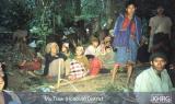 These photos also document some aspects of how villagers survive in these circumstances. For many, their experience of evading SPDC columns extends over the past two decades, so upon leaving their village they are usually very fast to organise and establish shelters, arrange shared food supplies, rudimentary schools and religious worship (see photos 1-7 to 1-12 and 1-13 to 1-16 ). Rather than panic and hunger, organisation and solidarity are the norm. Schools and religious activities are set up as quickly as possible because these provide continuity to village life and focal points for community togetherness while isolated in the forest; and children are still allowed the opportunity to play (see photos 9-9 and 10-15 ). Alternative foods readily available in the forest are prepared, and rice soup is used as a way to make the rice supply last longer (see photo 10-87 ).
