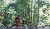 Photos #10-82, 10-83: In photo 10-82 , villagers in H--- village, Bu Tho township, Papun district prepare their belongings before fleeing into the forest as a group on hearing that an SPDC Army column is approaching the area of their village. Later that day, photo 10-83 shows a woman from the village walking her baby at their forest hiding site, where they will remain until the column moves on. These photos were taken in November 2003. [Photos: KHRG researcher]