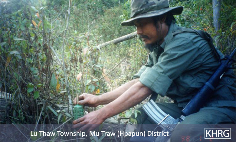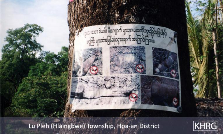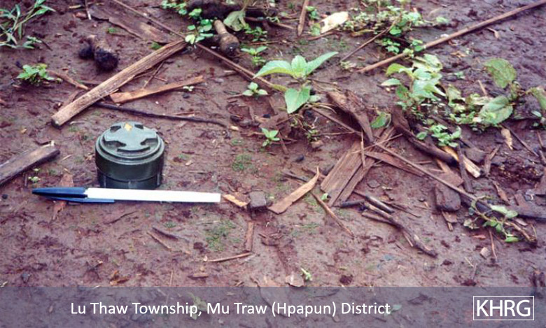 Landmines are used extensively by SPDC, DKBA, and KNLA forces in Karen regions. The SPDC has not ratified the 1997 International Convention on the Prohibition of the Use, Stockpiling, Production, and Transfer of Antipersonnel Mines and On Their Destruction (commonly referred to as the "Mine Ban Treaty"), and the DKBA and KNLA cannot ratify it because they are non-state groups. While the use of mines has been increasingly condemned and curtailed globally since 1997, their use by all parties has steadily increased in Karen State during the same period. The 2002 report "Impact of Landmines in Burma" released by Nonviolence International claimed that there had been a slight but steady increase in mine incidents throughout Burma since 1995, reaching an estimated 1,500 landmine victims per year. Landmine use has continued unabated since then, and the 2004 "Landmine Monitor" released by the International Campaign to Ban Landmines states that "there are some indications of increased mine warfare" and that "Myanmar is among the countries with the highest number of [mine] casualties each year." [1] The SPDC manufactures large numbers of several types of mines in its principle mine factory in Meiktila and associated explosives factories throughout central Burma, while the KNLA and DKBA continue to improvise their own rudimentary mines. None of these groups effectively map their mines or remove them when no longer wanted. The SPDC and DKBA only inform villagers which areas are mined if it serves their strategic intent, which is seldom. The KNLA tries to inform villagers, but only sporadically and often insufficiently.