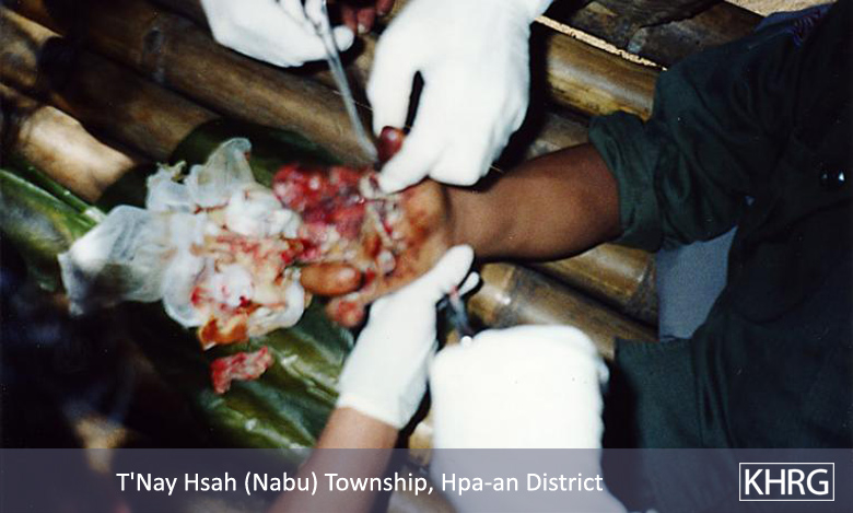 Many landmine victims die on the spot or before they can be carried to help, which may be several days away. The limited medical help available, usually from KNLA medics or mobile medical teams, is usually limited to amputation without anaesthesia. Mines not only cause death and loss of limbs, but also force villagers to abandon their villages and fields, and undermine their survival by restricting their movements and livelihood activities.