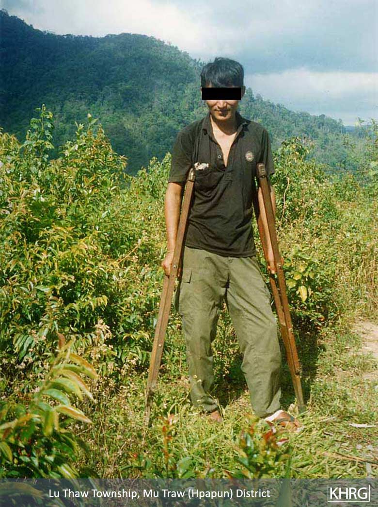 The photos below have been divided into two categories: The Mines , showing some of the types of anti-personnel landmines being used in Karen areas and how they are used, and The Victims , showing the direct and indirect effects that these landmines have on villagers. Additional information and background on mine use in Karen areas can be found in most major KHRG reports and in past KHRG Photo Sets.