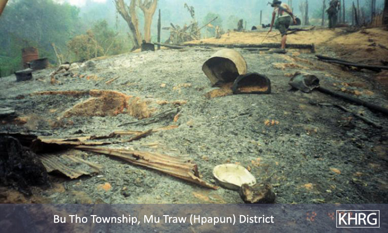 From October 2004 through January 2005, SPDC forces based in the plains of western Nyaunglebin district made forays eastward up the rivers into the hills in an effort to flush out the hill villagers who have thus far evaded their control. The timing deliberately coincided with the annual rice harvest, and the tactics were simple: seek out the villagers' fields, burn or scatter the harvested grain, destroy the crop still in the fields by trampling or landmining it, or let animals and insects destroy it once the villagers have fled. Burn the rice storage barns, the houses, schools and churches, and shoot the villagers on sight. Make life in the hills untenable, so that villagers have to come and live under SPDC control.