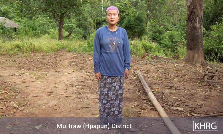 Naw R---, 17 (right), and Naw S---, 25 (below) are schoolteachers in Papun district. The villagers try to provide them with food as payment for teaching but are usually unable to provide enough. Naw R--- lives in a house the villagers built for her, where she raises chickens as a way to get money to go home during the school holidays. On August 28 th 2005, SPDC troops from Light Infantry Division #44, Infantry Battalion #207 Column 2 came and stayed a night in the village, and the next morning they stole four of her chickens. She says she didn't dare complain for fear of retaliation. The second photo shows Naw S--- also receives very little for her work, yet when the same SPDC Column came to the village where she teaches on October 9 th 2005 they stole her watch from the cloth bag in her house when she wasn't there. She can't afford to buy a new watch so now she has to constantly borrow watches from other people in order to teach her classes on time. [Photos: KHRG]