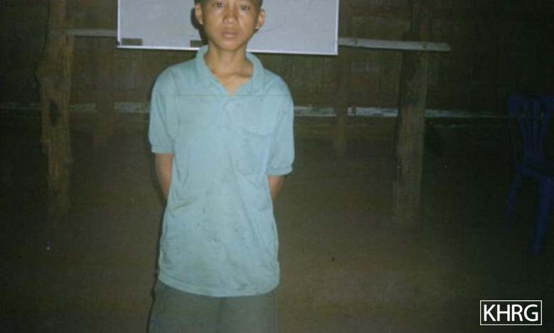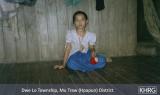 Seventeen year old Saw T--- is in 8 th Standard (Grade 8). He is from the Irrawaddy Delta but his father died and he has many siblings, so his family could no longer afford to send him to school. They sent him with his grandfather into the Karen hills, and his grandfather asked the KNU district authorities to support his schooling in one of their local schools. Many parents in both plains and hill villages send their children of all ages to KNU areas and ask for help in sending them to school. The second photo shows Naw M--- is from W--- village in Dweh Loh township, Papun district. She says she wants to go to school but her parents cannot afford to send her. This photo was taken in August 2005. [Photos: KHRG]