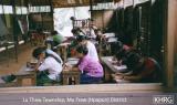 Students at Tee Mu Kee school in Lu Thaw township, Papun district, in June 2005. The school goes from kindergarten to high school (10 th Standard), but it gets very little outside support. Each student has to give 5,000 Kyat and one big tin (12.5 kg/27.5 lb) of rice per year to support the teachers. Many of the students hire themselves out for labour to get money for books and pens. The teachers receive only 120,000 Kyat (about US$120) per year, so they need to be supplied with food. This provides little incentive to finish high school and become a teacher. The last photo shows these children in Thay P'Kee Der village in Papun district say they would like to go to school, but there is no teacher so they cannot study. [Photos: KHRG]