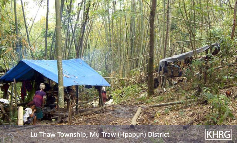 The SPDC military offensive throughout northern Karen State and covering parts of Lu Thaw township in northern Papun District is aimed at consolidating SPDC control over Karen territory. As such, the SPDC targets villages resistant to military demands instead of KNLA forces that are more difficult to overcome. All civilians living beyond the direct and easy reach of the Army are ordered and physically forced to move to villages and relocation sites which are easily accessed from SPDC bases. However, many villagers, aware of the prevalence of abuse in military-controlled areas and unwilling to give up their land, choose to evade the SPDC's operations by fleeing into the forest near their villages and fields. In these situations the SPDC perceives displaced villagers as a threat to the consolidation of military control and works to destroy their ability to sustain an adequate livelihood while living in the forest. All attempts are made to force villagers out of the forest and into SPDC-controlled areas. Food supplies and fields are destroyed; displaced villagers are shot on sight; and the military works to sever all contact and trade between villagers in hiding and those under SPDC control.