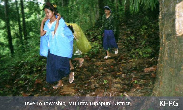 Students from W--- village travel through the forest to attend school in another area after SPDC officer Htun Aung would not allow their village to open a middle school. [Photo KHRG]