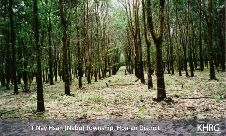 Villagers in areas throughout Dt'Nay Hsah township are being forced to labour on SPDC-owned rubber plantations established on land previously confiscated from local villages. Jobs include clearing the scrub from around the base of the trees, cutting back branches, clearing new plantation grounds and planting new saplings. All of this work is uncompensated and the rubber is sold off to profit the entrepreneurial military units who control the plantations.