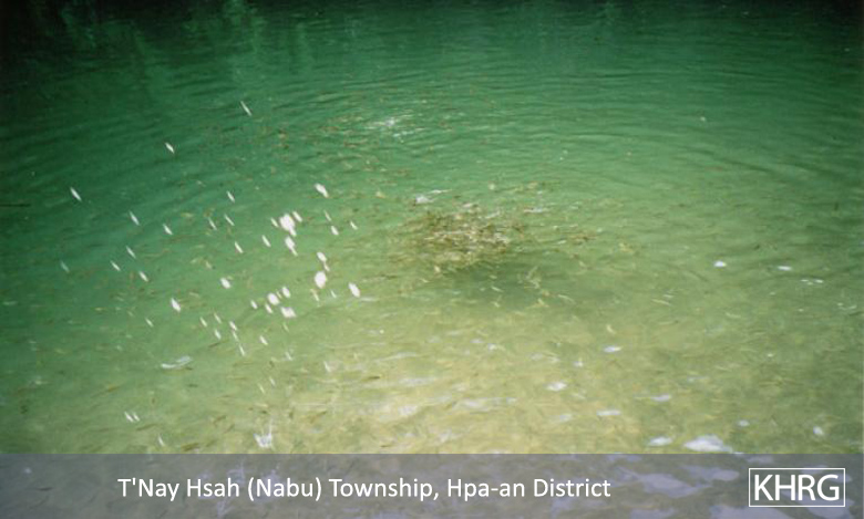 In the pond shown here villagers from Dt'Nay Hsah township raise fish as a form of insurance against SPDC demands for 'taxation'. If villagers cannot afford the costs of such demands, they offer to pay the soldiers in fish raised in the communal pond, or sell the fish for money, then restock the pond. [Photo KHRG]