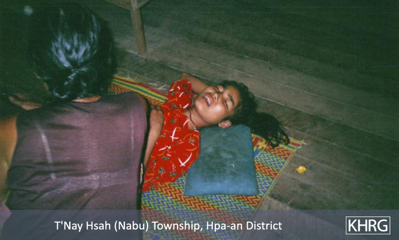 Malaria is the most common health problem in Dt'Nay Hsah township. In Htee Wah Blaw village for example, at least 40 people have died from malaria over the past few years, most of whom have been under eight years old, and villagers say that this year the incidence of malaria has grown much worse. Villagers who get sick typically go to local KNU clinics. Although the KNU provides medicine for these, villages must register such clinics under the SPDC which then claims that they are provided and supplied by the government. Alternatively, some villagers seek treatment at SPDC clinics located in towns and larger villages. The high cost of treatment and medicine provided at these, however, are prohibitively expensive for most villagers. According to some villagers tuberculosis, although present, has yet to become a common illness in Dt'Nay Hsah township.