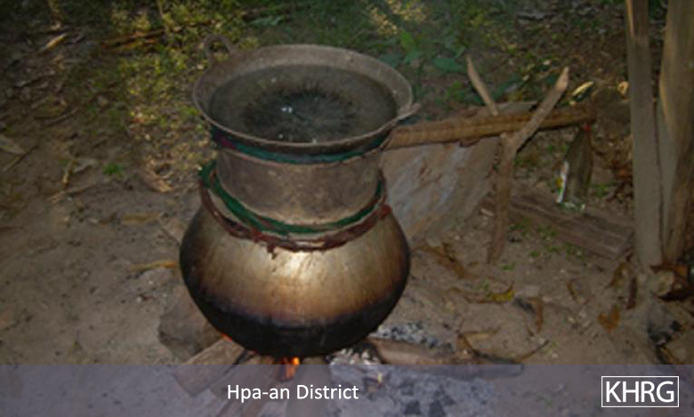 Distilling rice alcohol. At this time of year Karen people distill alcohol and have some after finishing work in the fields, and also serve it to their friends who helped them in the fields on the harvest. [Photo: KHRG]