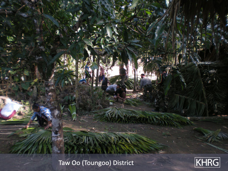 Highlighting the frequency with which villagers in SPDC controlled areas of Toungoo suffer exploitative abuses, a KHRG research recently remarked that he had little forced labour to report, because villagers felt it pointless to comment upon. "The villagers in Toungoo have to face forced labour continuously," he wrote in August. "Because it is so frequent, it is not good to ask the villagers about it every day. The villagers are fed up with providing us information about forced labour, because they have reported it so many times and it still does not stop." This should not be taken to mean that forced labour is not worth remarking upon: instead, it is a distressing indicator of the perverseness with which forced labour is utilised by the SPDC, and the frustration felt by villagers who, year after year, have had to work as unpaid labourers for the army, fixing roads, clearing brush, gathering materials, building and repairing army camps and portering equipment; While at the same time attempting to meet their basic livelihood requirements.