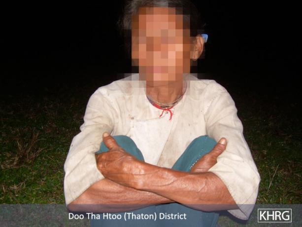 "They [the DKBA] accused me of taking rice to the KNLA soldiers. [DKBA officer Than Htun] asked me, 'Why didn't you come home this afternoon?' I answered him that I was just finding my buffalo, that's why I came home late [after an evening curfew]. He said, 'Don't you lie to me.' And I said, 'I'm not lying.' Then he told me that he would kill me. I said to him, 'What I can do? Even if you kill me, I'm telling you the truth: I didn't take any rice to them [the KNLA]. That's all.' At that time, one of his soldiers came and hit me in the head with his gun two times and I started getting dizzy. I asked him, 'Why do you do this to me when even the SPDC is leaving me alone?' He answered me, 'The SPDC may not kill you, but we will."