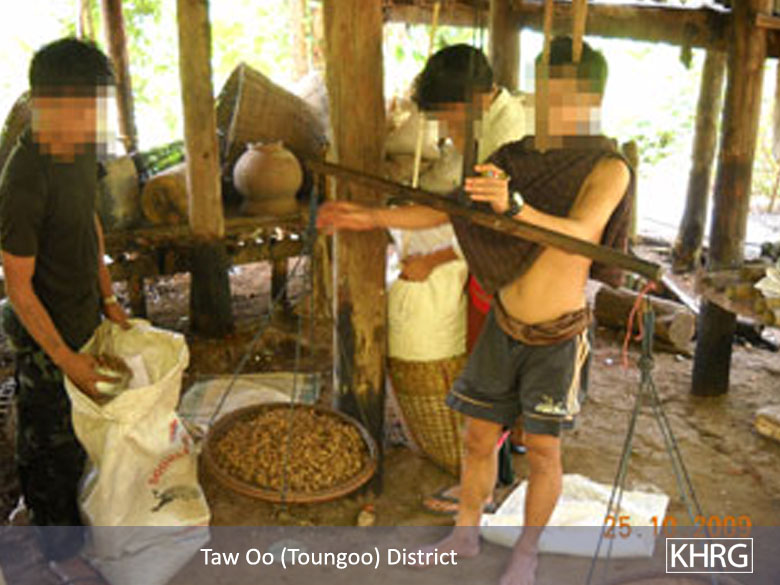 This field report documents the continuing and worsening demands for forced labour and restrictions on movement and trade imposed on villagers in Toungoo District by the SPDC army. These exploitative and restrictive practices undermine the livelihoods of both individuals living under SPDC control and villagers who have opted to live in hiding. Heavy demands for forced labour limit the time that villagers in relocation sites or SPDC-controlled areas can devote to securing their livelihoods; this strain is exacerbated by increasing restrictions on villagers' freedom to travel for farming and trade, the latter of which is essential for obtaining basic foodstuffs and other necessities in many parts of Toungoo. This situation in turn reduces the availability and accessibility of essential food and medicines to villagers in hiding, who continue to resist SPDC exploitation despite grave risks to their physical security. This report covers incidents between June 2009 and January 2010.