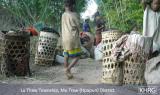 "If our brothers and sisters didn't have any rice, we carried our baskets and went to Sa--- to find about one or two milk tins (.2 – .4 kg. / .43 – .86 lb.) of [husked] rice from our brothers and sisters there… SPDC [Tatmadaw] soldiers didn't make any problems for us because we hid ourselves to go and find the food from our brothers and sisters. They didn't see us and we didn't see them also… [Sa--- village] is under the control of SPDC soldiers, and SPDC soldiers control them. They [villagers in Sa---] are their people but [when] people from our side went there, they still talk to us in Karen because they are Karen… Sometimes, we go to 3rd Brigade [Nyaunglebin District] to carry areca nuts [betelnuts]. We have to cross a vehicle road. We open our eyes and we are really afraid of everything. We arrive there and come back with one thousand or two thousand areca nuts. People who don't go there, they want to eat areca nuts and they exchange areca nuts for one or two milk tins of rice. We find food like that."