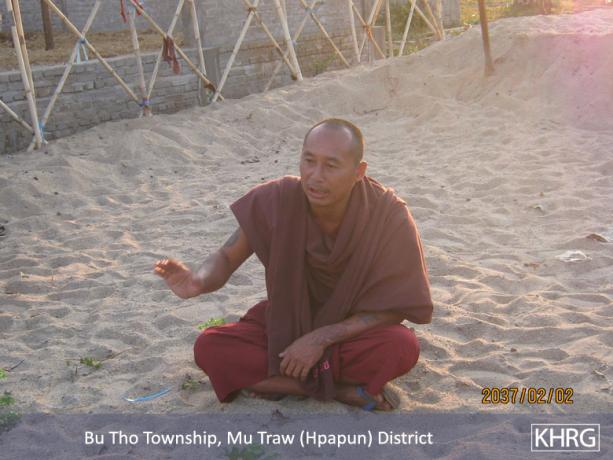 We do not know what monk Hkay Maw Way, also known as Hkay Mee Ka's, plan is, but it seems that the villagers in the Meh Pree area support him very much. We don't know what they [the monk and his soldiers] will destroy or how they will abuse the villagers' rights. We do not know which villages this monk will take people from for his new village. He wants to build the village in a rubber plantation. He has named this place Htoo Wah Kaw Kaw Kloh, but this place was not called this in the past. I do not know what it was named in the past. He plans to build a school and hospital in this village where civilians will not need to pay fees. However there is one thing: the civilians have to clear vegetation from his rubber plantations when he asks. People do not know where this monk has received assistance and money from; he just goes back to Kaw Taw and travels to Pa'an city.