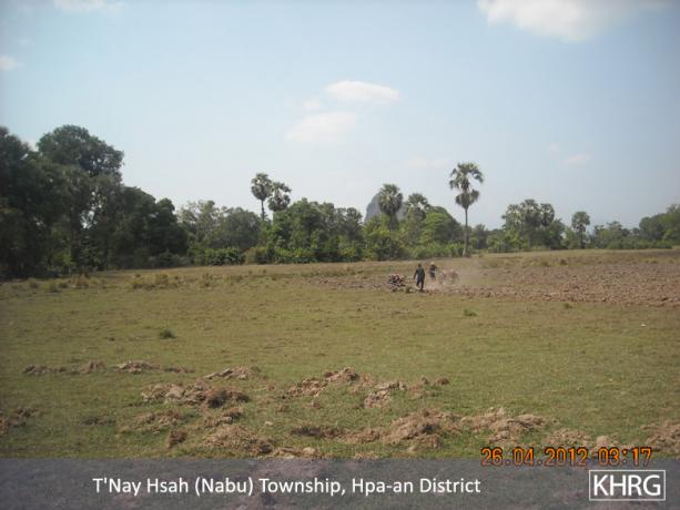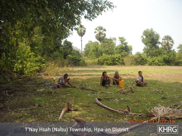 On April 10th 2012, when I arrived in T'Nay Hsah Township, I saw many villagers who were complaining differently in many villages. Some [villagers] do not dare go to their paddy farms or to their plantation farms. A reason for this, is that the Border Guard had planted landmines in their plantations, so some of the villagers were injured and many of the villagers' farm animals, such as cows, buffalos and goats were killed.