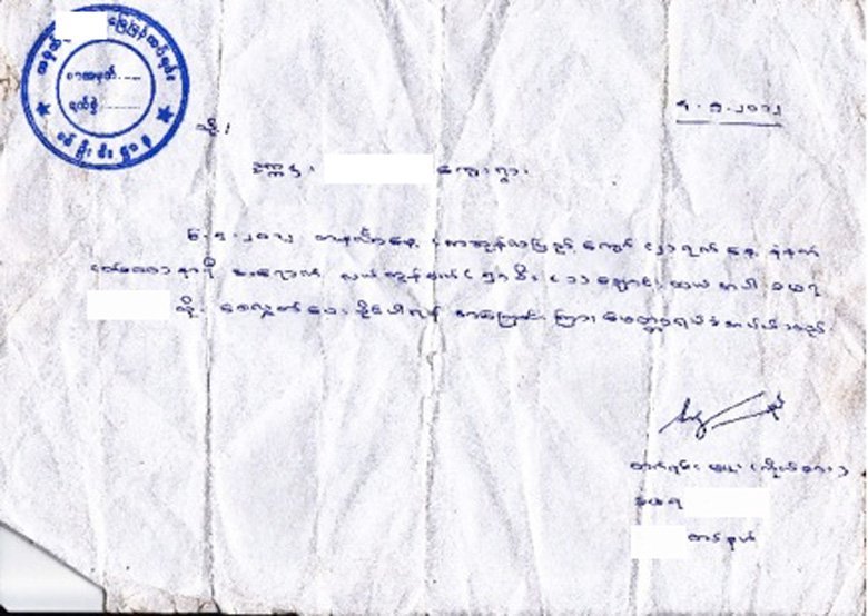 Despite the prevalence of requests for meetings, explicit demands nonetheless continue to be issued in writing: out of 44 order letters issued in 2011 and 2012 included in this report, 14 (32%) contain an explicit demand for labour, money, food or other supplies. Specifically, 8 out of the 30 (27%) order letters sent by civilian government officials, 3 out of 10 (30%) order letters sent by the Tatmadaw, and 3 out of 4 (75%) letters sent by the Border Guard contain explicit demands for a service, materials or the payment of fees or taxes.