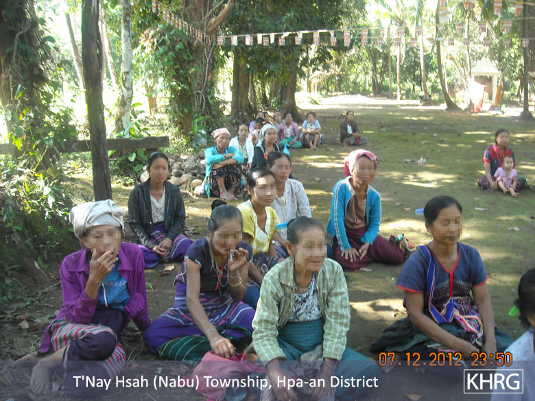 [2] In order to increase the transparency of KHRG methodology and more directly communicate the experiences and perspectives of villagers in eastern Burma, KHRG aims to make all field information received available on the KHRG website once it has been processed and translated, subject only to security considerations. As companion to this, a redesigned website will be released in 2013. In the meantime, KHRG's most recently-published field information from Hpa-an District can be found in the report, "Demands for soldier salaries in Hpa-an District, October 2012," KHRG, February 2013.