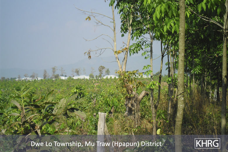 Currently, the recent abuse of civilians' rights that they have to suffer is that BGF Battalion #1013's officer Htoh Loh set up a residence in between K'Ter Tee and Noh Hpaw Htee [villages]. [Regarding] the civilians who live near to the residence of the BGF construction, the problems that they have to suffer are land confiscation, [the confiscation of] rubber plantations and [the confiscation of] farms. In the coming year, the problems that the civilians will have to suffer are that they do not have farm to plant paddy and they do not have rubber plantations to drain. The new generation will deal with many difficulties.