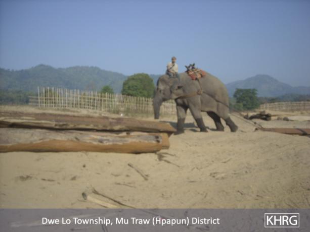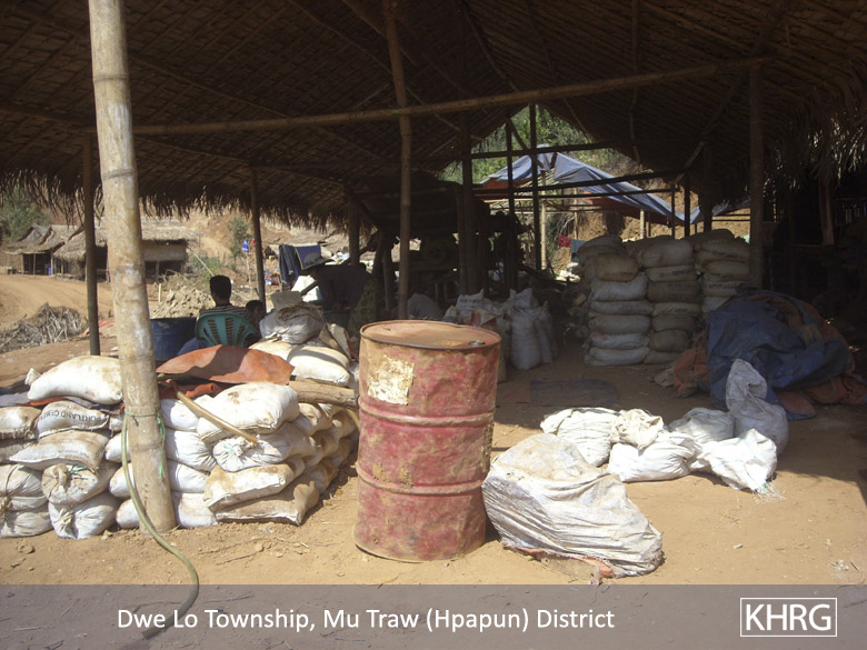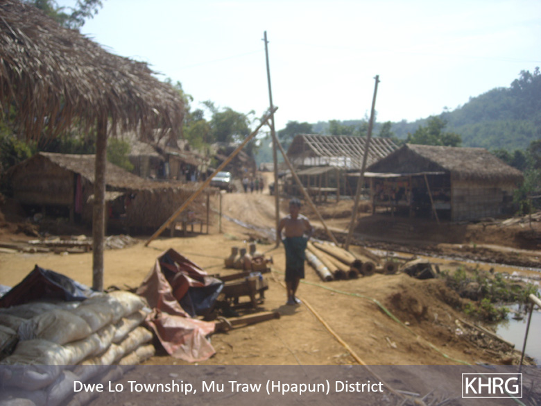 In the previous years 2009 to 2010, the civilians in Dwe Lo Township had to suffer from the DKBA's [Democratic Karen Benevolent Army's][3] and SPDC's [Tatmadaw's][4] forced labour and portering. Also when the DKBA came and mined gold in Baw Paw, Meh Kleh, and Meh Toh rivers, they confiscated the civilians' lands in order to mine gold. The civilians' vegetation, dog fruit[5] plantations, farms and the environment were damaged a lot. Since 2011, the civilians have not suffered forced labour, looting or gold mining from the SPDC and DKBA anymore. Even though the things like forced labour, demanding and looting of peoples' chickens and goats from the SPDC army active in our area have decreased, some remains.